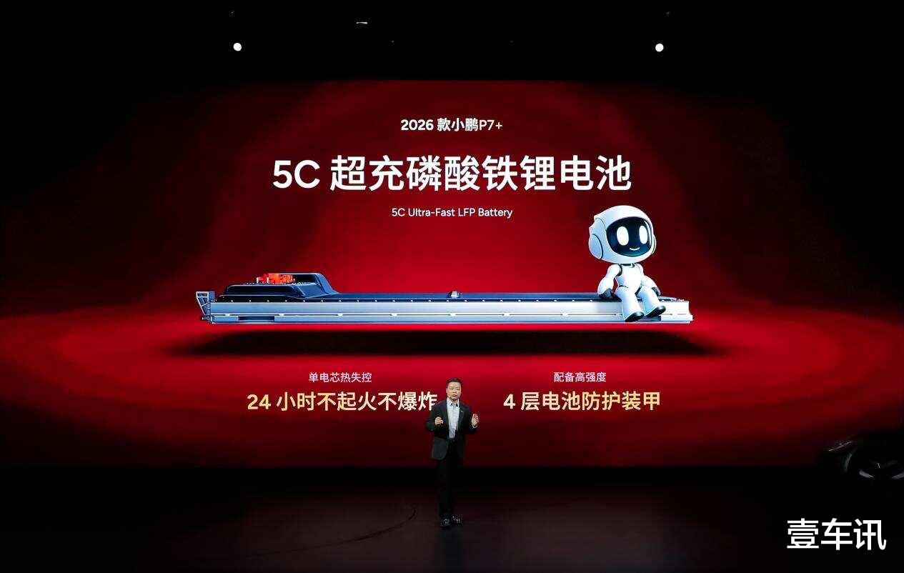 安全,是2026款小鹏P7+的核心基石。新车同步满足中国与欧洲双五星安全标准,树立智能电动轿车的安全新标杆。其搭载的5C超充磷酸铁锂电池,在热失控后可实现24小时不起火,安全性远超即将实施的2026年电池新国标要求;车身结构方面,采用全球最大吨位16000吨压铸机打造的量产最大一体式压铸后地板,并全系标配2000兆帕超高强度笼式车身,可承受高达800kN的冲击力,构筑起一座“移动的五星安全堡垒”。此外,P7+行业首发冰雪场景AES主动安全系统,精准应对复杂低温路况,为用户在各种出行环境中提供全方位、全天候的安全守护。