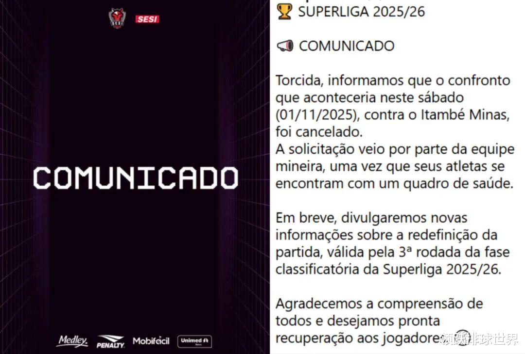 本赛季的巴西男排超级联赛刚刚起步,但米纳斯的“病毒风波”无疑为整个联赛敲响警钟,高强度比赛密度下,如何平衡竞技状态与健康保障,将成为各支队伍必须面对的重要课题,期待米纳斯男排早日恢复阵容完整,以更好状态回归赛场。
