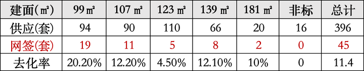 整体来看,起步99㎡户型去化最快,除了已网签的19套,还有不少预订支撑后续网签。