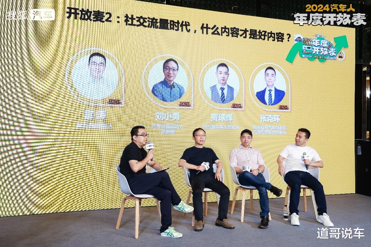 在开放麦环节,多位汽车媒体人围绕着“2024年的关键词与拐点”、“社交流量时代,什么内容才是好内容”两大主题开始发散思维,畅谈自身对于行业发展的理解和预判。两场开放麦环节分别由搜狐汽车总编辑张丽玥和车主必读创始人宫涛主持。