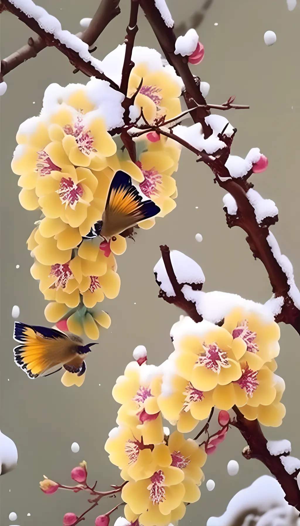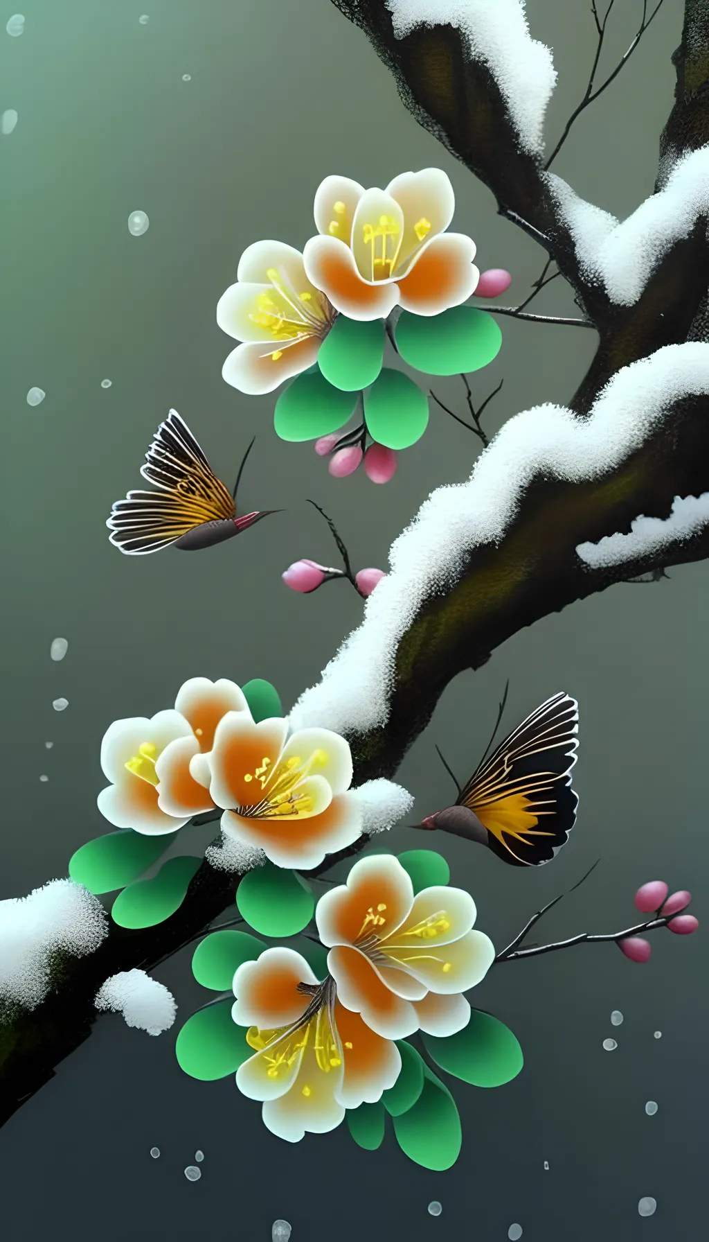 行香子 梅花雪压南枝,月浸苔根。向孤山、自守晨昏。何须羯鼓,早绽春痕。但影横窗,香浮夜,气涵坤。湖烟淡处,鹤梦逡巡。记当