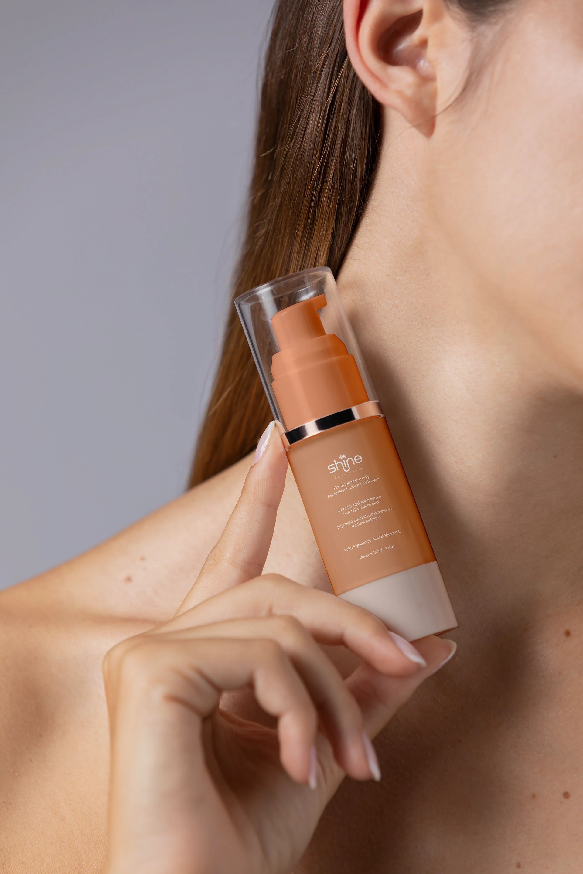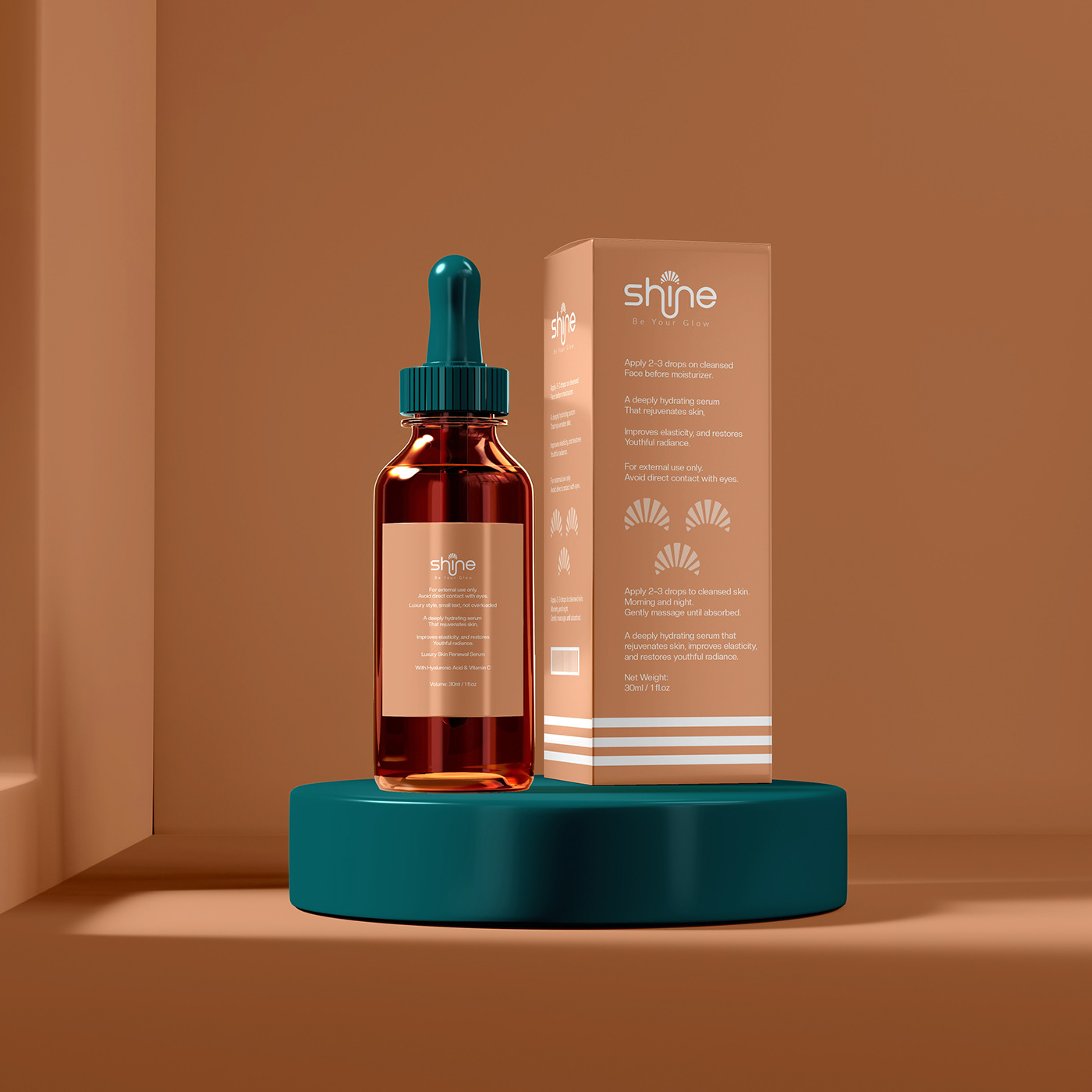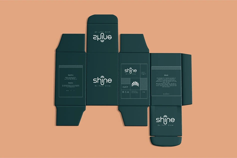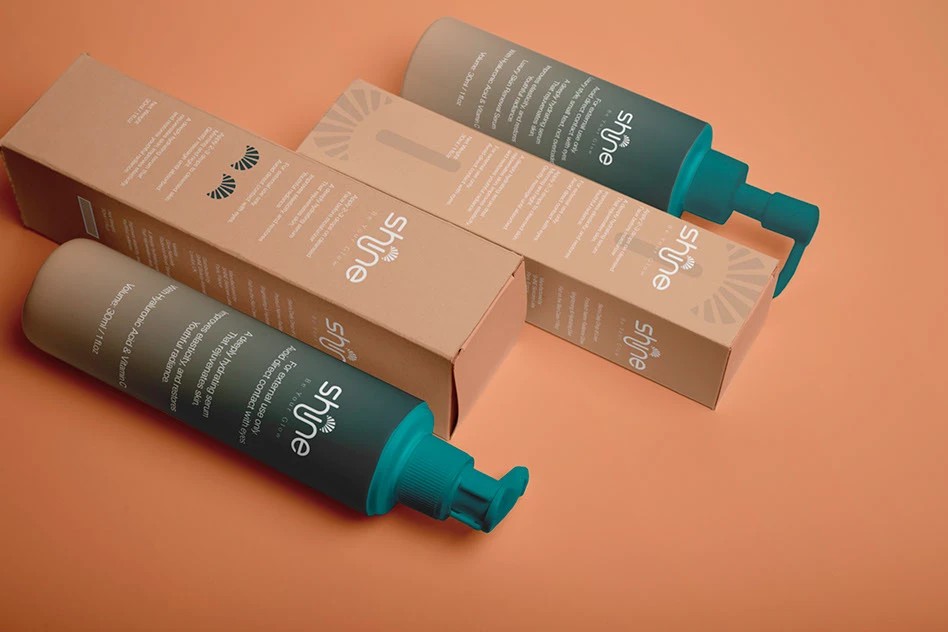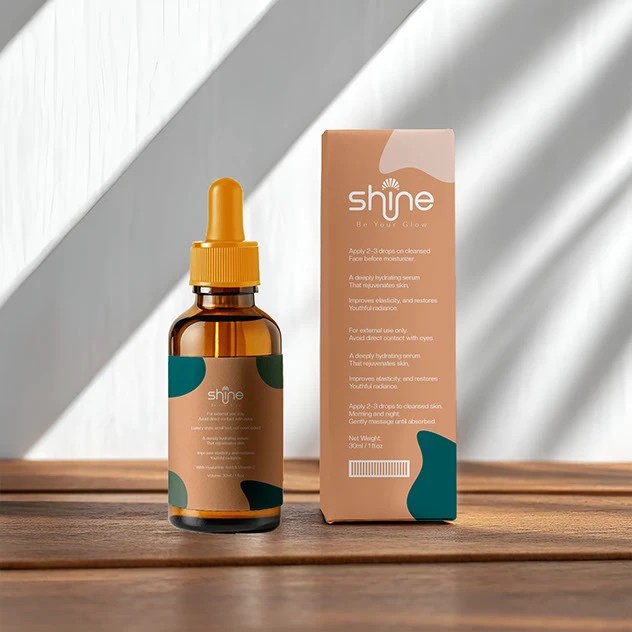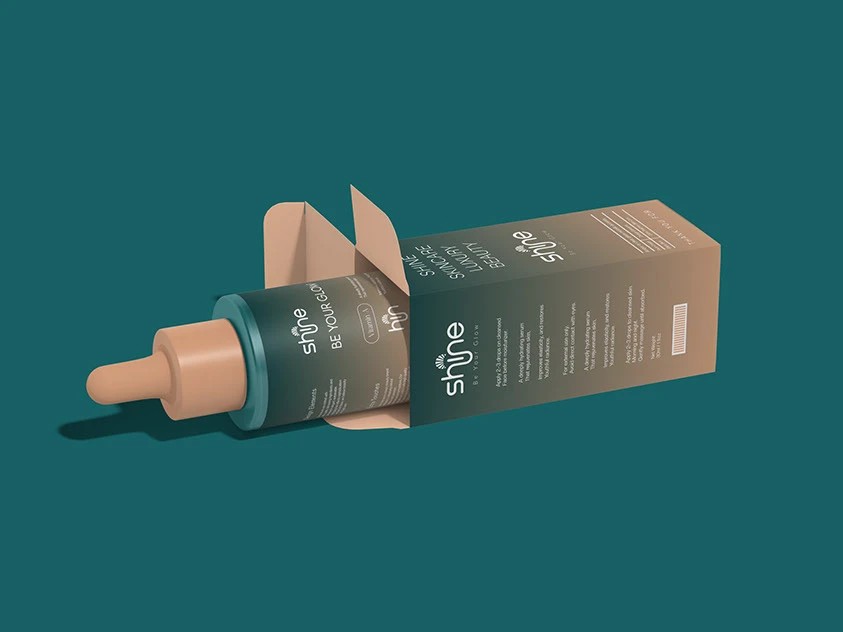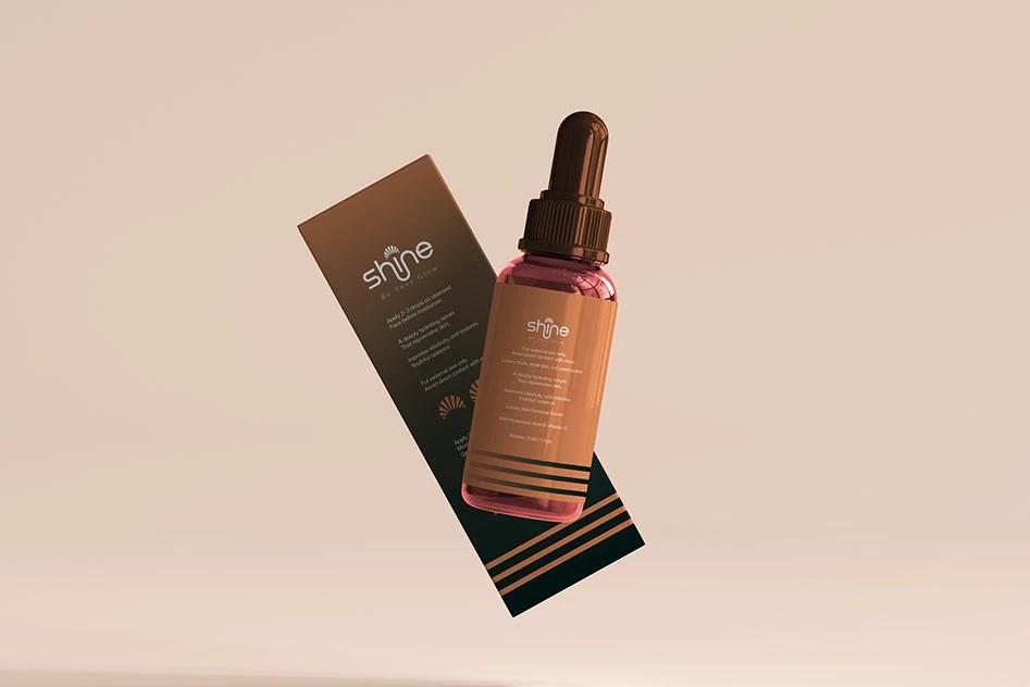 shine的包装设计则充满了灵动与活力。以暖棕色和蓝绿色为主色调,色彩搭配和谐且富有冲击力,瞬间吸引消费者的目光。滴管瓶身设计精致小巧,蓝绿色的滴管头与标签颜色相呼应,细节之处尽显用心。包装盒的设计简洁大方,清晰的文字排版让信息一目了然。整体风格时尚且富有亲和力,仿佛在向消费者传递着美丽与自信,让人感受到品牌的独特魅力。