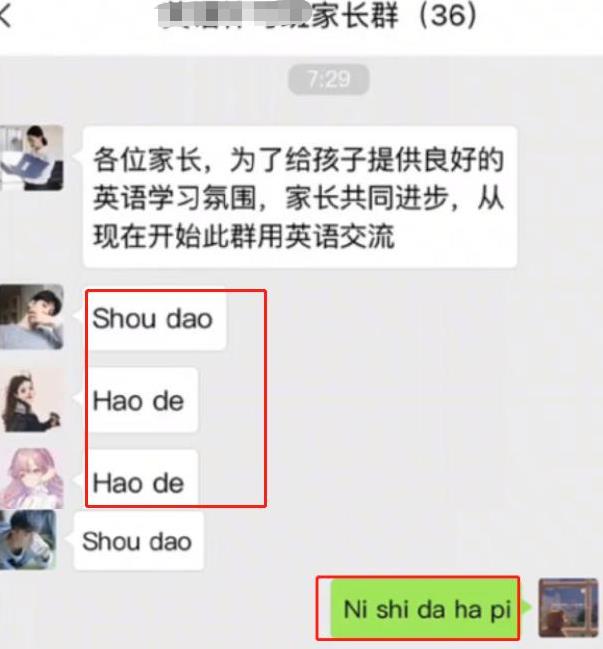 这么做似乎没有什么太大的意义,况且不是所有的家长都擅长说英语的,难道以后家长群的交流还要配个翻译吗?普通家长一边查一边说难怪家长们会爆粗口,总不可能把所有的精力都放在说英语上吧?一看就是在为难各位家长。