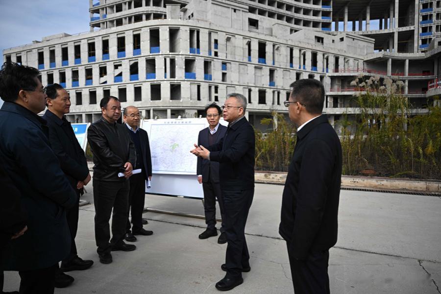 11月18日,沈晓明在湘潭经开区九华医院在建项目现场调研,来源:网络
