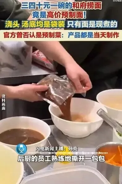 近日,有多位网友反映,某府捞面的浇头、汤底均为袋装。并有消费者说自己在店内亲眼看到后厨员工使用加热调料包完成面条制作。