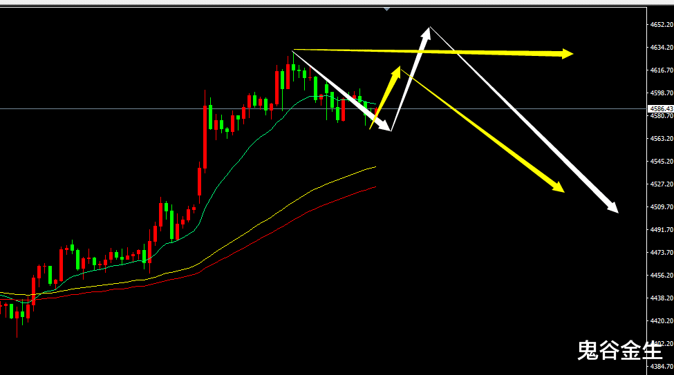 先说下鬼谷对黄金的看法,首先涨势是明显的,但是一直上涨可能性不大,中线出现回撤是必然的,那么什么时候回落,这是需要考虑的,现在期待周线跌破4540,出现高位吊颈线,或天图再去冲击一次更高点,而后再出现大跌,届时就是顶部了,当然以上纯属臆想,大家不可当真,只是一种假设;后面怎么操作,还是要看下面分析;