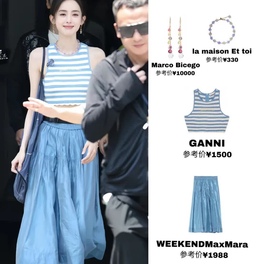谁懂啊✨ 娜扎的夏日潮酷穿搭太绝了。条纹背心+伞裙,清爽又随性格纹外套混搭背心短