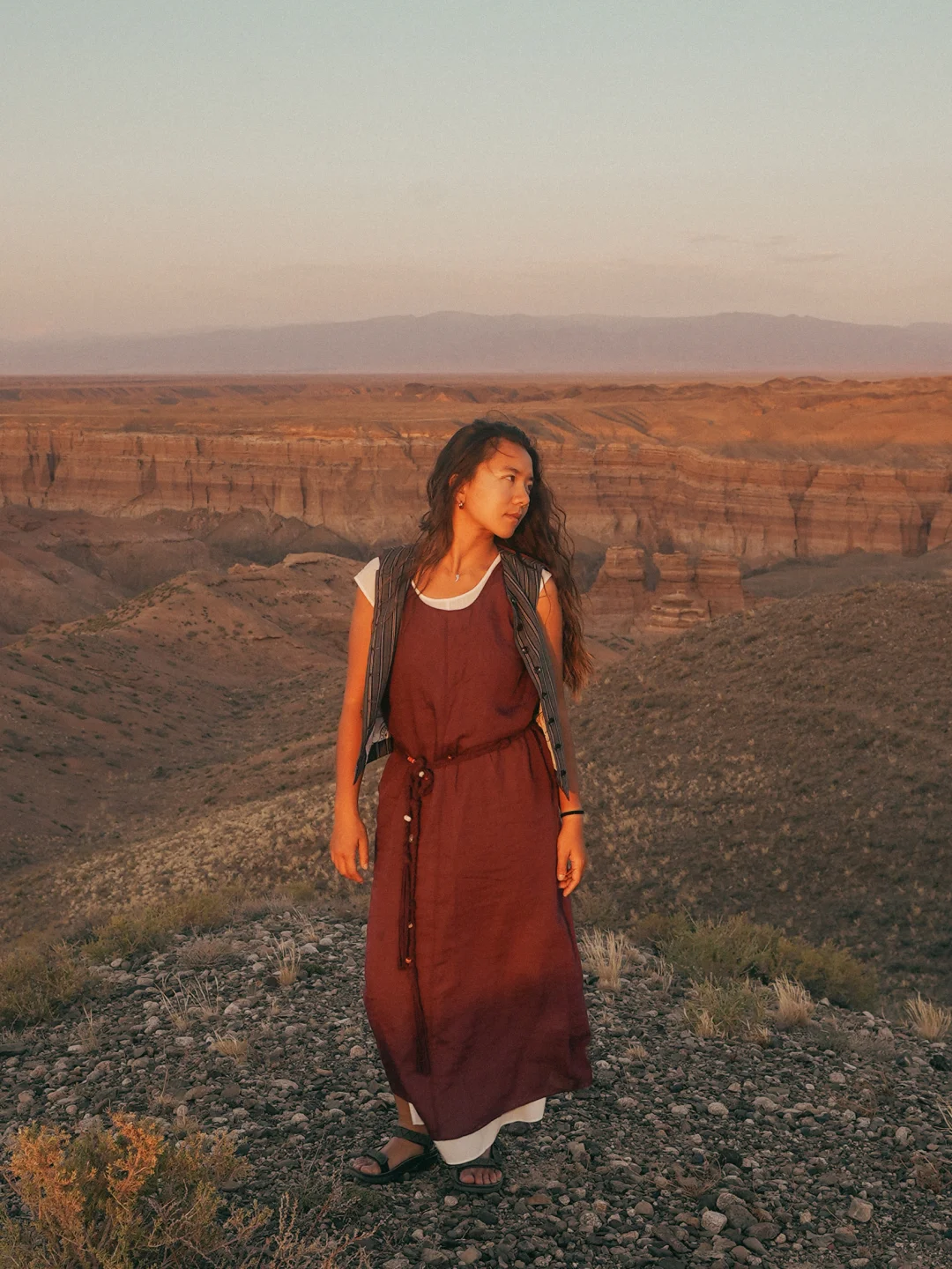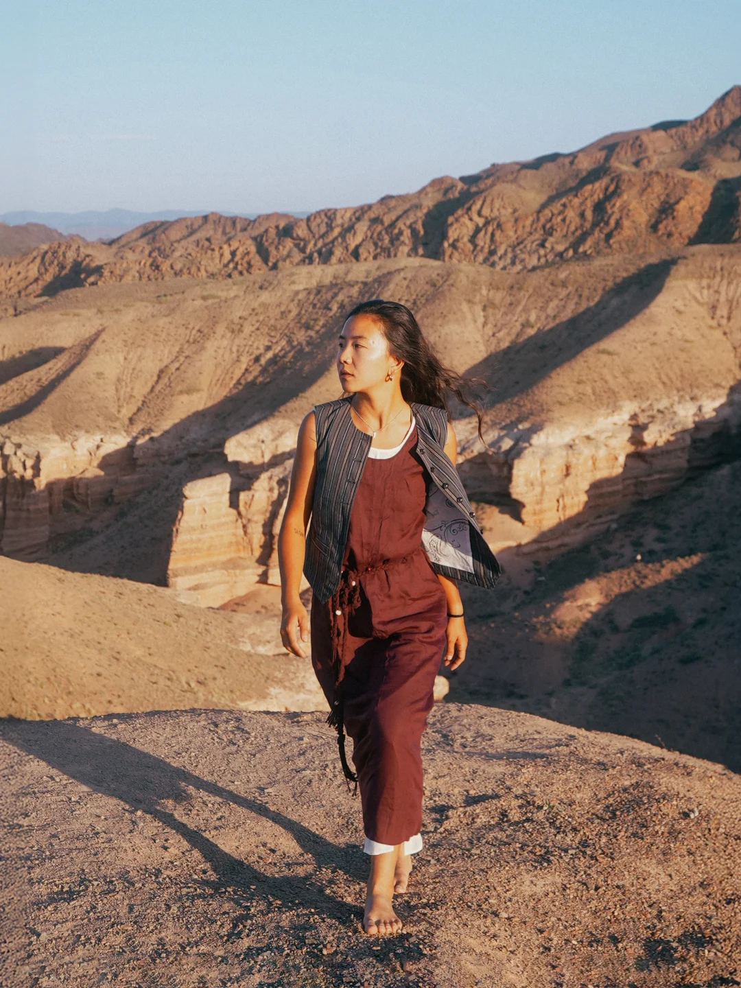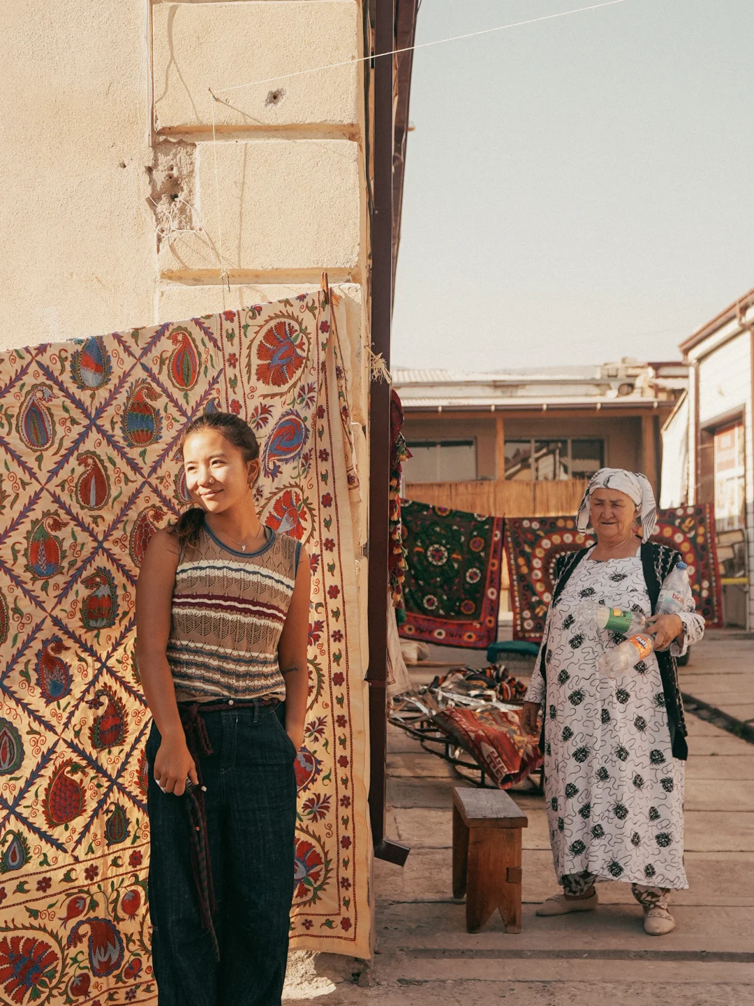 走了很多路, 我终于意识到了旅行中的”行”字的分量。 行走在世间,把体验变成自己的一部分。 是一种把无限的世界浓缩到自己有限的生命中的方式。 在路上,当耳边响起听不懂的语言, 当陌生的香料在舌尖炸开味道, 那种熟悉的兴奋感又来了—— 世界正把我拉出常规轨道, 所有感官突然变得敏锐。 在夏天的伊犁, 天苍苍野茫茫,风吹草地见牛羊, 古诗词里的一切关于边塞的幻想在我眼中呈现。 连绵的绿浪里吹来清香的风, 草原上的日子仿佛不会有烦恼。 踏出边境,来到中亚两国。 在塔什干,苏联的野兽派建筑下, 地下铁里的艺术宫殿, 我与第一个飞上太空的人对视。 在撒马尔罕,站在古老的蓝色穹顶下, 手指摸过历史的斑驳瓷砖。 在布哈拉,无数种神秘乐器穿过耳朵; 在希瓦,波斯地毯在老人的手中被不断编织。 一路上,穿着SUPIN速品初秋新款, 飘逸在风中的裙角有一丝游牧的气息, 每一寸纤维都可以陪我在路上走得很远很远。 生命是一场盛大的流动, 而旅行让这场流动更加多维。 我想我不是迷恋旅行, 而是那种在路上的感觉, 每一次出发的瞬间。 “I am rooted, but i flow. “