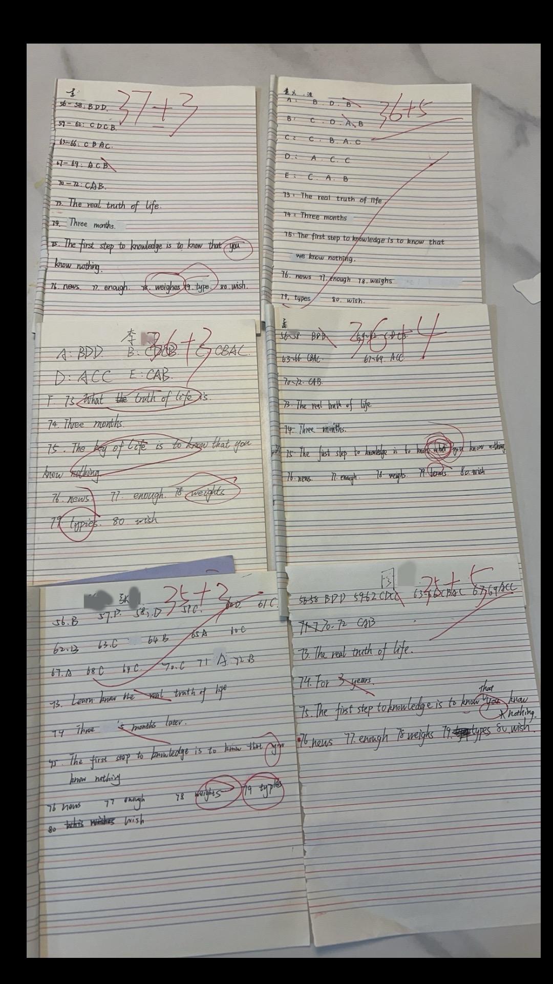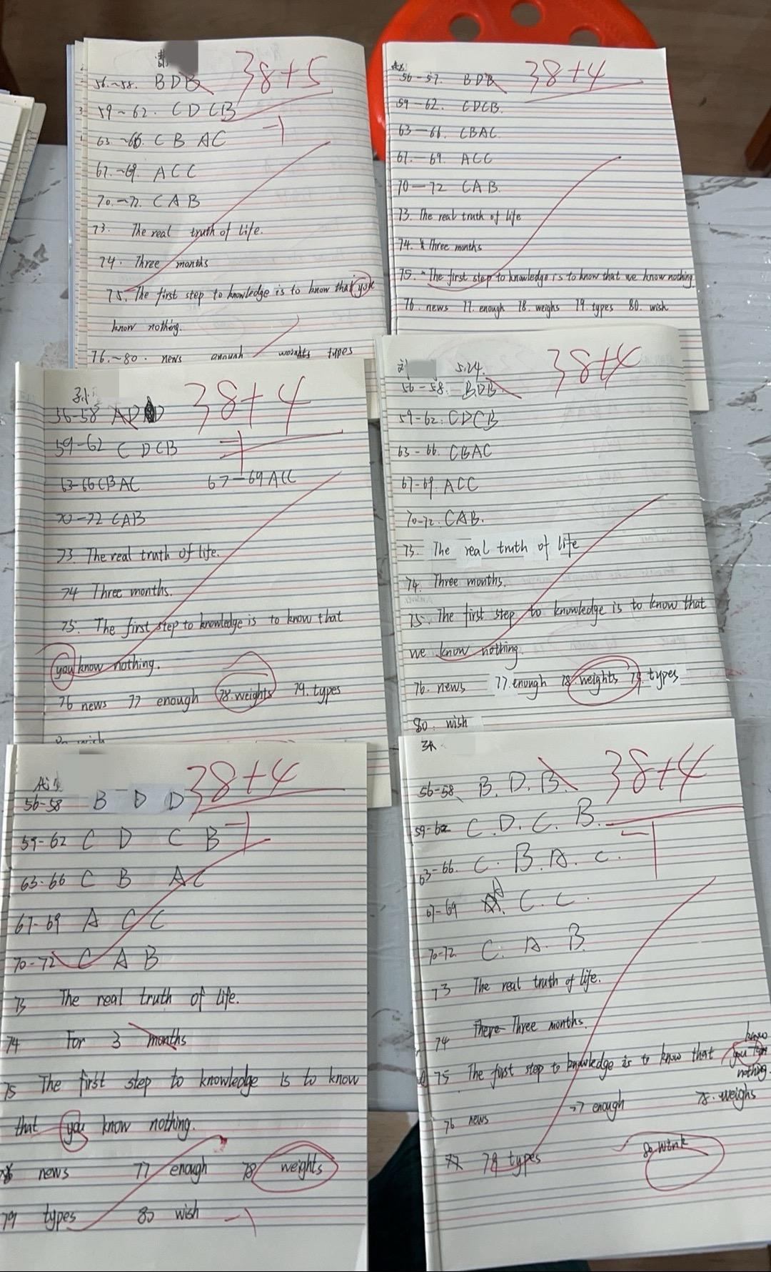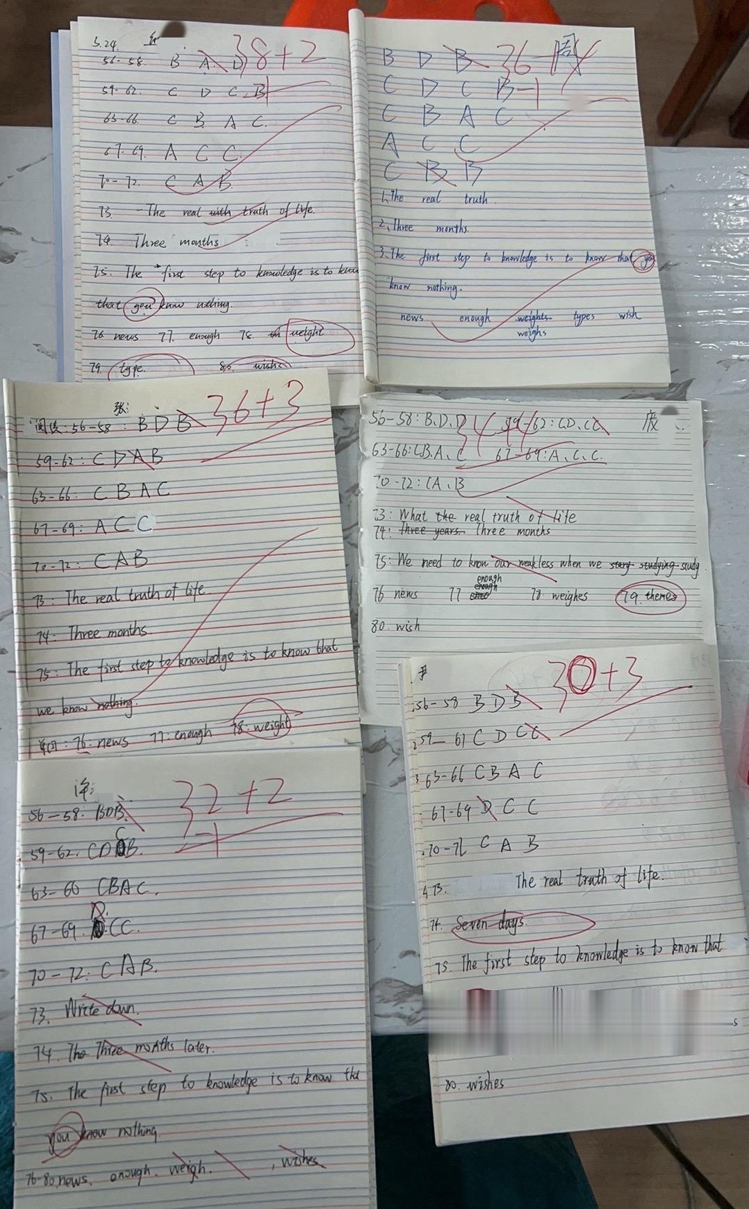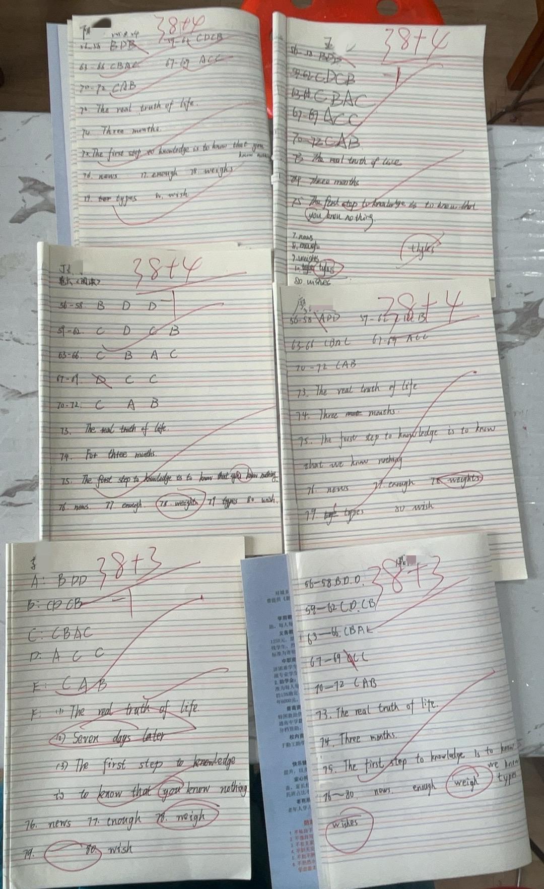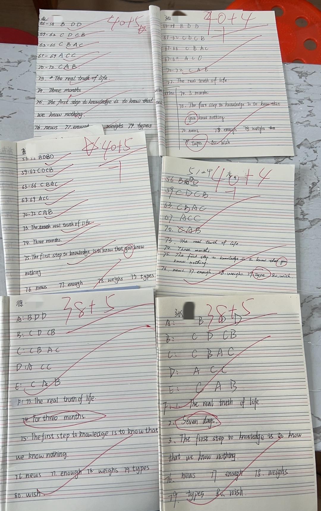 陈老师如何带全班培优(8)—精准发现问题。哪怕是班课,也能精准发现每个学生的问题。 “口头提问”和“限时检测”是不一样的。 “课堂口头提问”,可以提问学生“笔记”,进行“互动”,或者快速处理一些“家庭作业评讲”,了解学生的作业情况。在家里做作业可以翻书,查词典,学生的状态较为轻松。 而“限时检测”,是模拟“考场环境”。在规定的,有限的时间里,去做对应数量的题。就是看你在有限时间里的思考力。 比如,你在家里各种构思,酝酿,查阅,琢磨,找好词好句