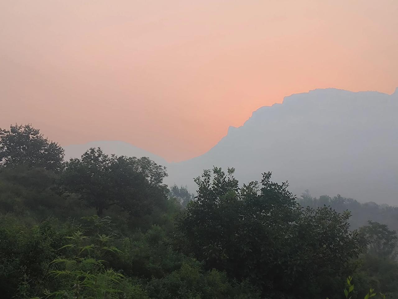 伺候老娘20多天,今天才得以外出走走。山野。雾岚弥漫,晨曦曦薇。两侧的草丛中虫鸣