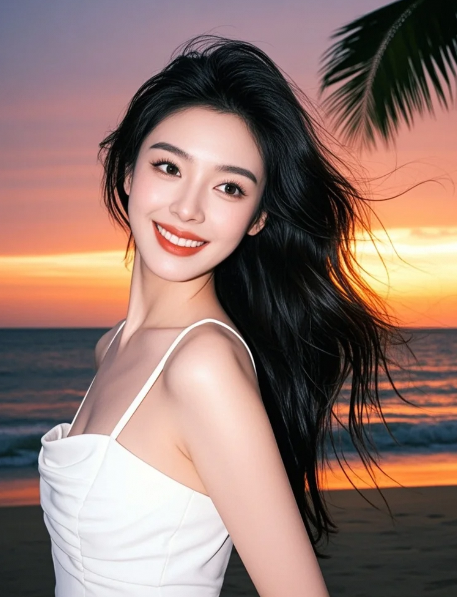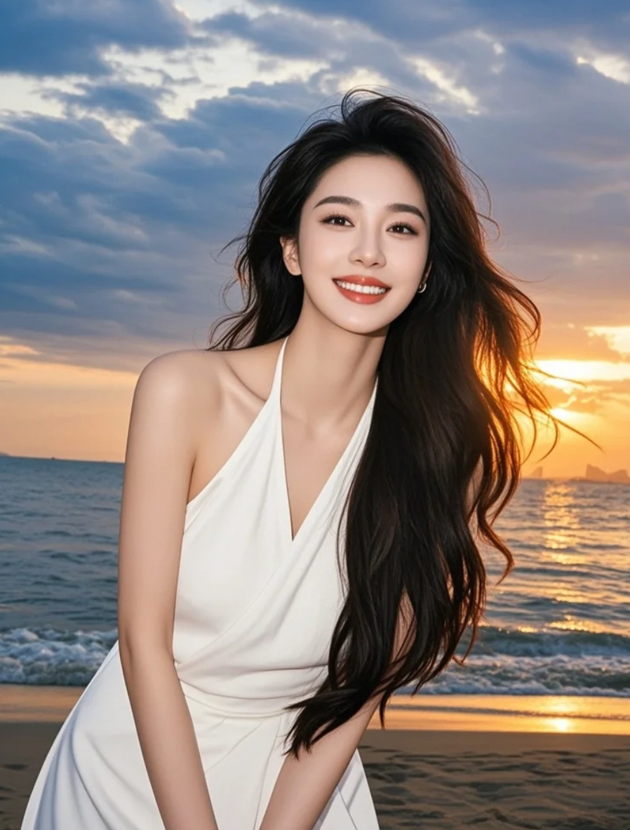 海风吹起额前碎发,露出宁静的眉眼,白裙微动