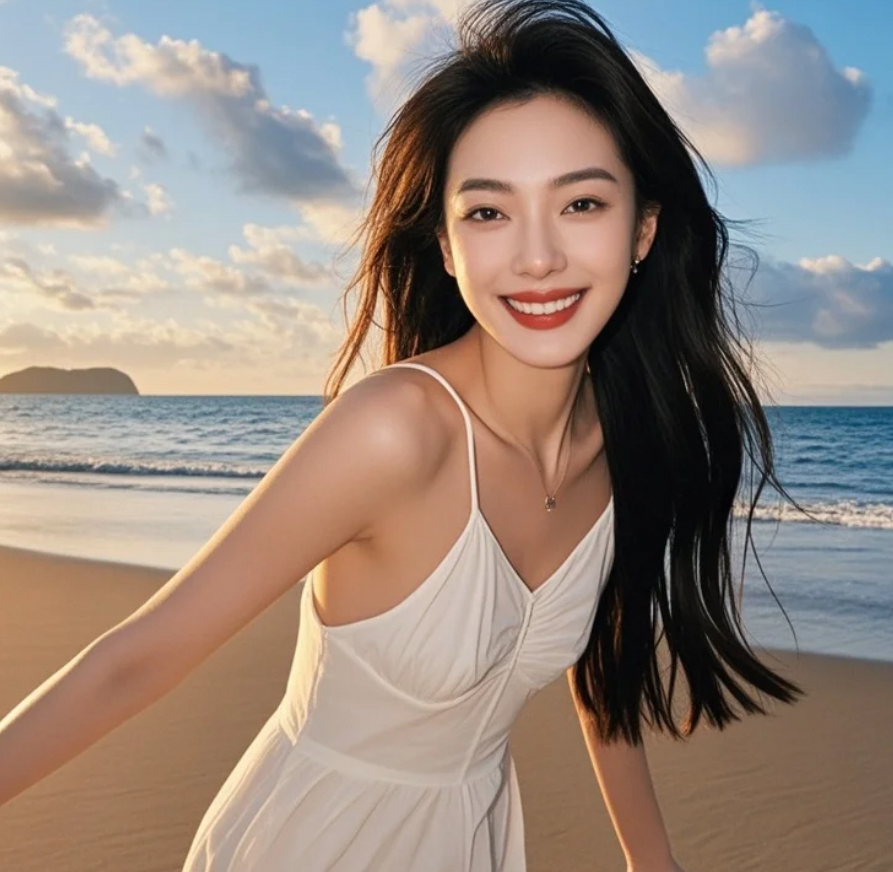 发丝染上橘红,裙角沾满落日余晖