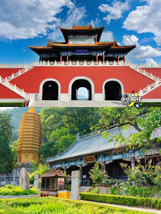 ➤ 上盘(万松寺→挂月峰):奇松破石而生,秋季万松寺红墙银杏