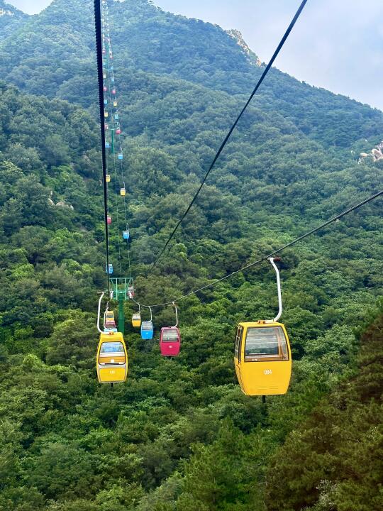 山顶很凉快,大概比山下低5度。山上有卖水和吃的的,也可以自备一些。夏天缆车里闷闷的,带个扇🪭