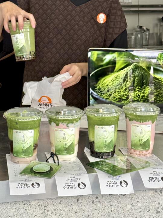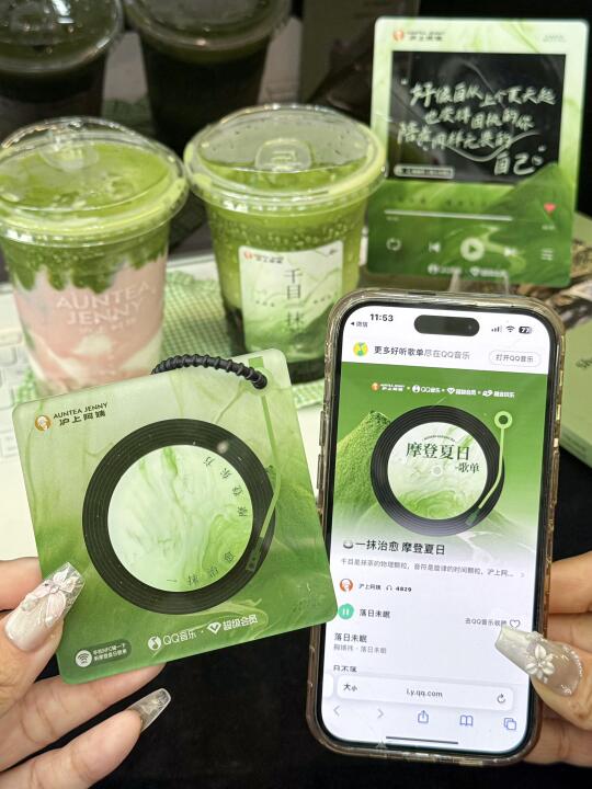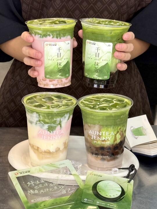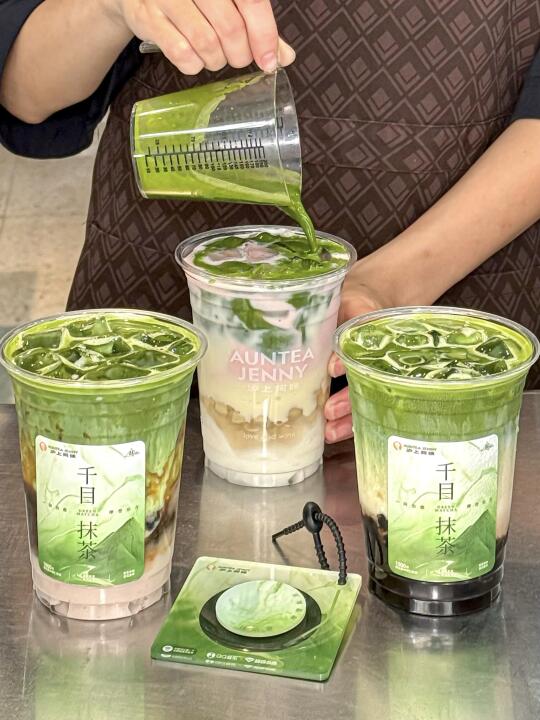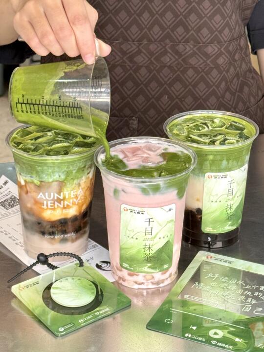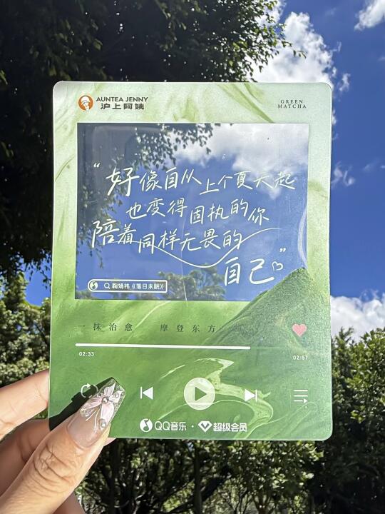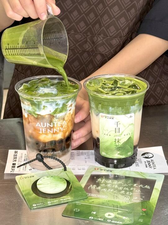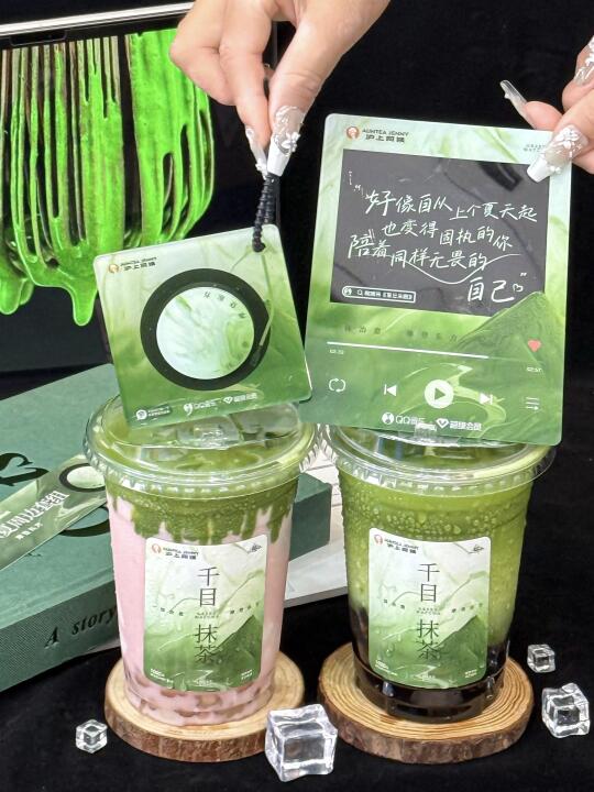 好喝到想连着喝一周!!开盖细嘬一口浓郁抹茶,搅匀更是一番丝滑 感觉是今年夏天喝到坠清爽的抹茶!!没有之一 还有鞠婧祎周边歌词透卡和亚克力音乐播放器….手机轻碰NFC就能听婶子备好的夏日歌单啦~~ · 隐藏喝法:千目抹茶芭乐➕米麻薯➕正常冰➕三分糖!! 怎么会好喝成这样….粉绿渐变配色我直呼惊艳!!! 抹茶佬都给我去喝😭😭香甜的芭乐混合茉莉花香要多清爽有多清爽!底部还有滑溜溜的奶冻和马蹄丸子又糯又脆!每一口都伴着抹茶🍵超级浓郁,口感层次贼丰富!!! · 还有千目抹茶波波也吼吼喝!!每一口都能喝到浓醇的抹茶味!!推荐多加一份黑糖波波!边喝边嚼真嘟绝了🤤🤤 ·