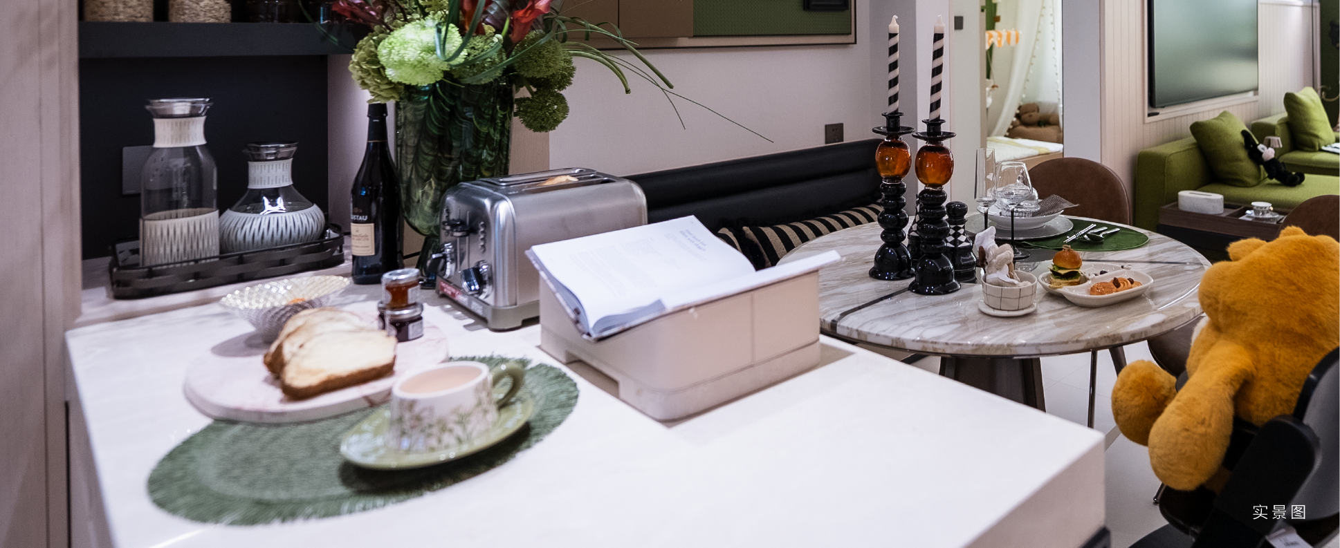 主卧践行“小家化”理念,设亲子护理角、光彩梳妆区与书香静阅角,满足多元私密需求;蒙氏儿童房依成长理念设计,搭配专属健康角守护孩童成长;厨房升级为“一家之煮”场域,轻松应对周末小聚、快速早餐与家庭聚餐,尽显顶配改善的品质感。
