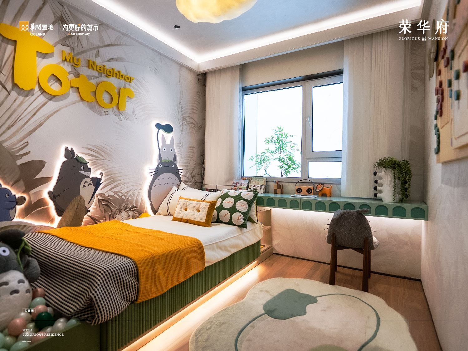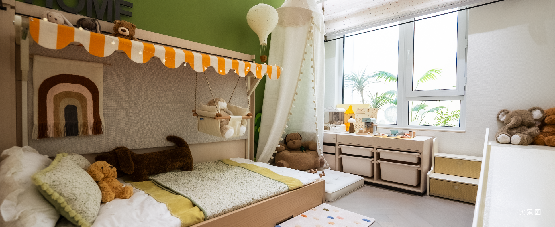 蒙氏儿童房则以成长型设计适配不同年龄段,专属健康角守护孩童成长;文艺书房的可变兴趣桌与展示区,让阅读、办公与亲子共读各得其所。