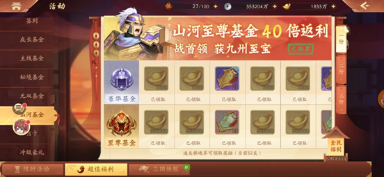 在福利礼包方面各种基金元宝都提升了100倍,每完成一个就可以领取到惊人的30W元宝