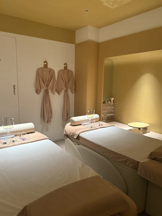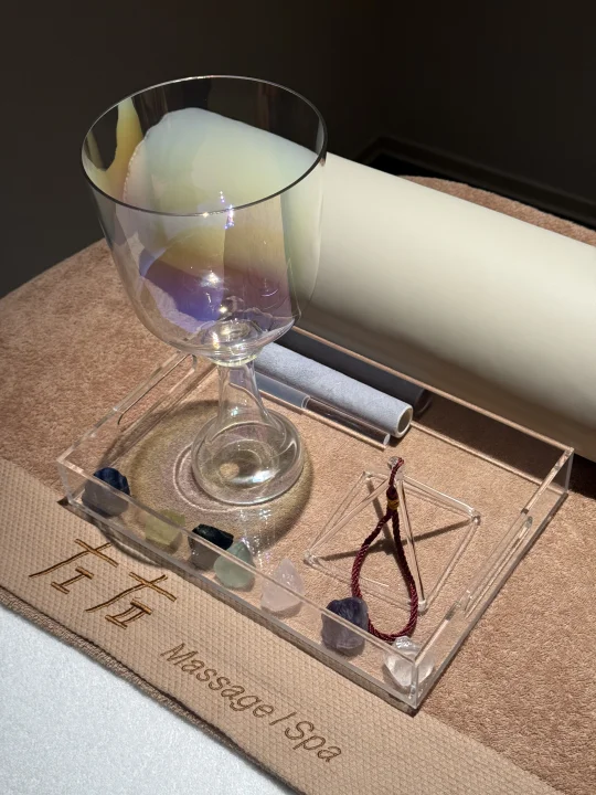 在上海快节奏的生活里,终于找到一处能让自己彻底“慢下来”的地方… 这家是上海shou家引入水晶声波疗愈的SPA,一进门就被极简静谧的空间吸引。旋转楼梯很好拍,每个房间都坚持一客一消毒,干净又安心❤️超贴心的补妆区,做完SPA也能精致出门🪞太适合姐妹约会之后继续行程!! 按摩前,理疗师用水晶棒轻轻敲击,独特的声波频率让整个人不自觉进入深度放松。搭配个性化定制的精油,像是为压力和肌肉酸痛量身调配的薰衣草、葡萄柚香气,瞬间感觉情绪和身体都被温柔接住🫴 按摩床软得像被云朵包裹,细节也满分💯配备无线充电,还提供一次性用品和蒸汽眼罩。按摩结束后还有精致茶点,仪式感拉满🆙 不止是身体放松,更是一场心灵疗愈。在这里,重新找回属于自己的平静和能量。