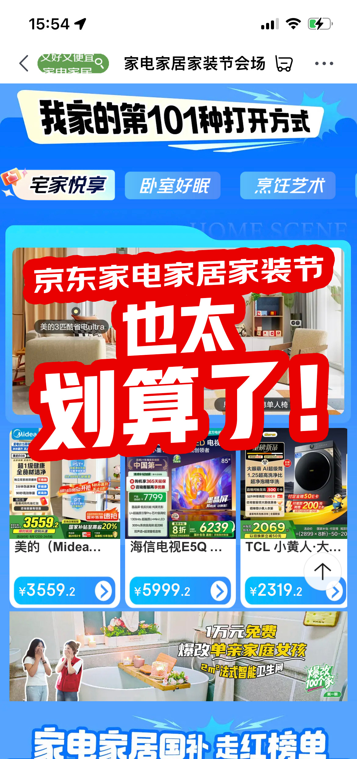 京东家电家居家装节 种草这个扫地机器人好久了!平时价格一直居高不下,这次京东家电家居家装节真的太给力了,直接骨折价,还免费送装拆旧!家里终于可以解放双手了,智能清洁一步到位。像我这样的懒人终于也能轻松拥有理想中的智能生活了~还有超多智能家电都在疯狂补贴,快来一起薅羊毛!上京东搜【家装节】,万千智能好物,多重补贴不止5折,免费送装拆旧,逛京东MALL,家电家居同质价低50%,京东还联合了百大品牌,用智能打开100种家的想象  打造100种理想家的可能,还等什么呢,早买早享受,智能家电真的好香~