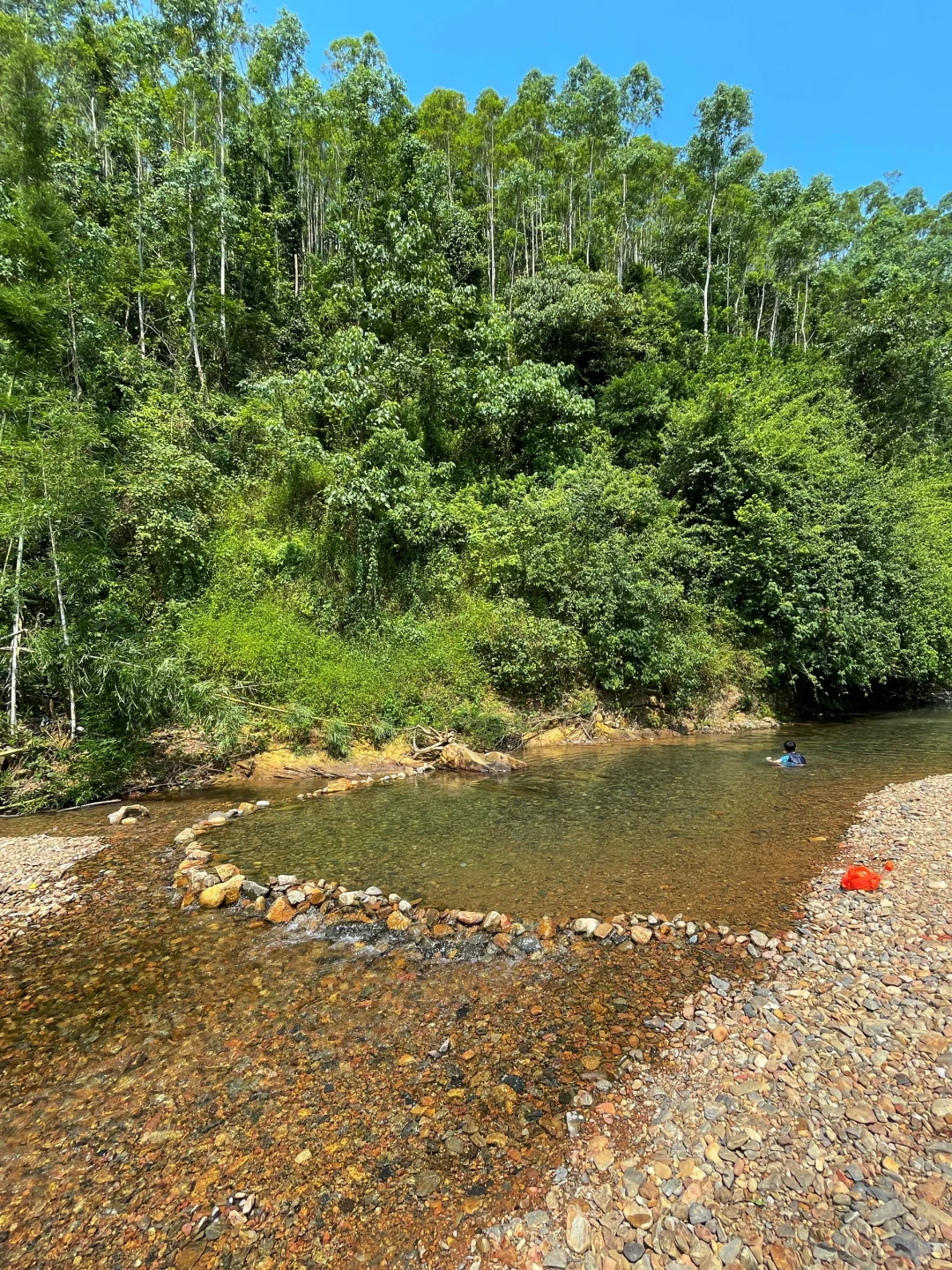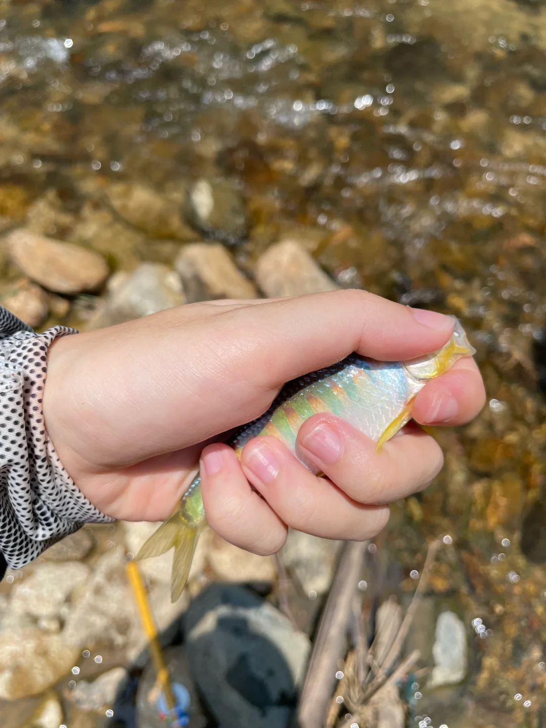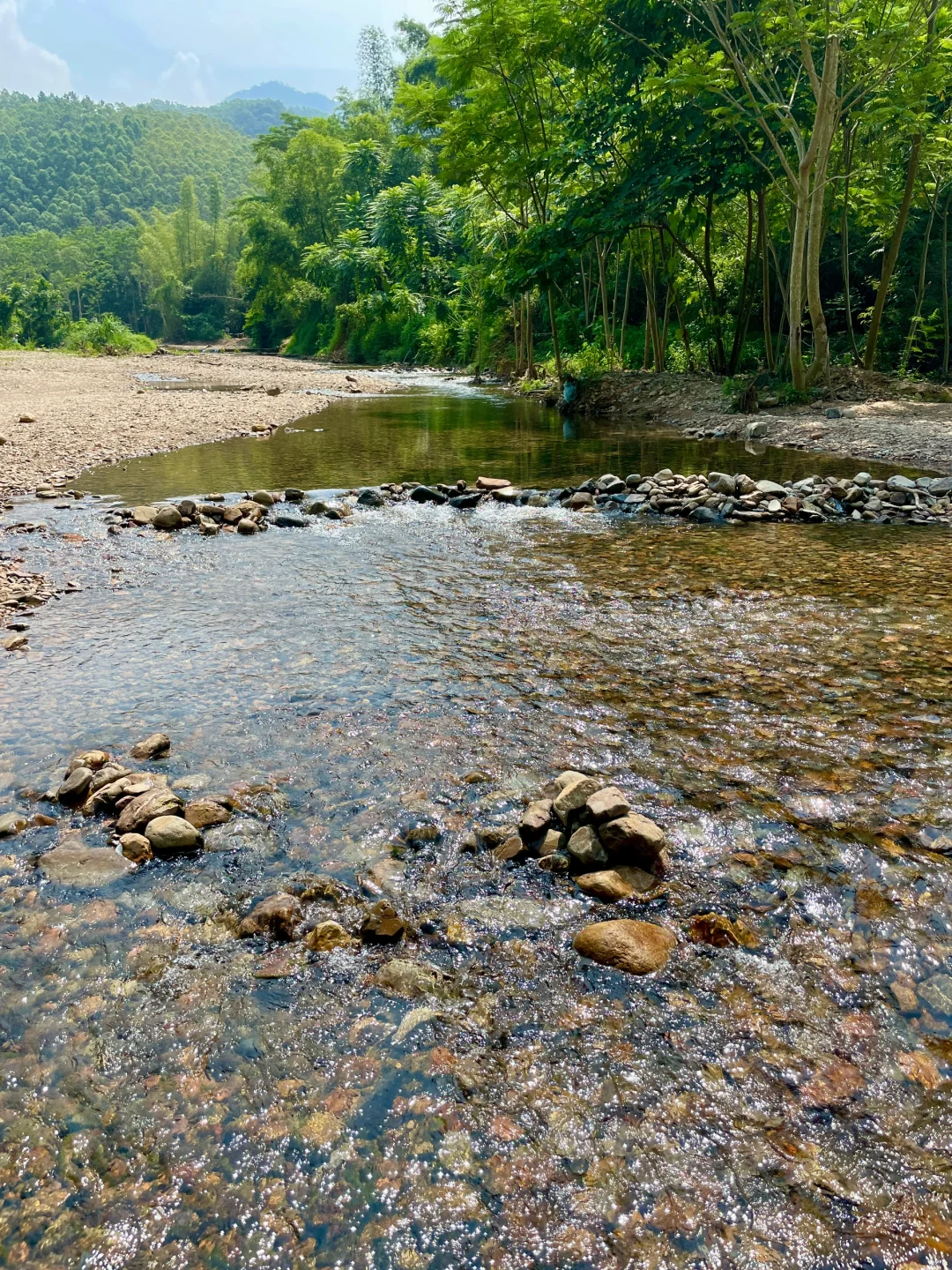 这里有巨型浅滩非常适合大小朋友溯溪玩水💦,还有深潭可以游泳,🧊溪水清澈见底,阳光洒在水面上波光粼粼,超级美,就算是正午水也是冰冰凉凉的,肉眼可见发色🐟长鳍鱲,拟细鲫,石头上也藏着超级多趴地虎和吸鳅。我一下杆就上了一条发色的长鳍鱲,然后来了一个大叔带着两个小孩过来游泳,然后就没口了😓,鱼友们想要钓鱼就要挑偏僻的地方,上游很多地方都是没人的。