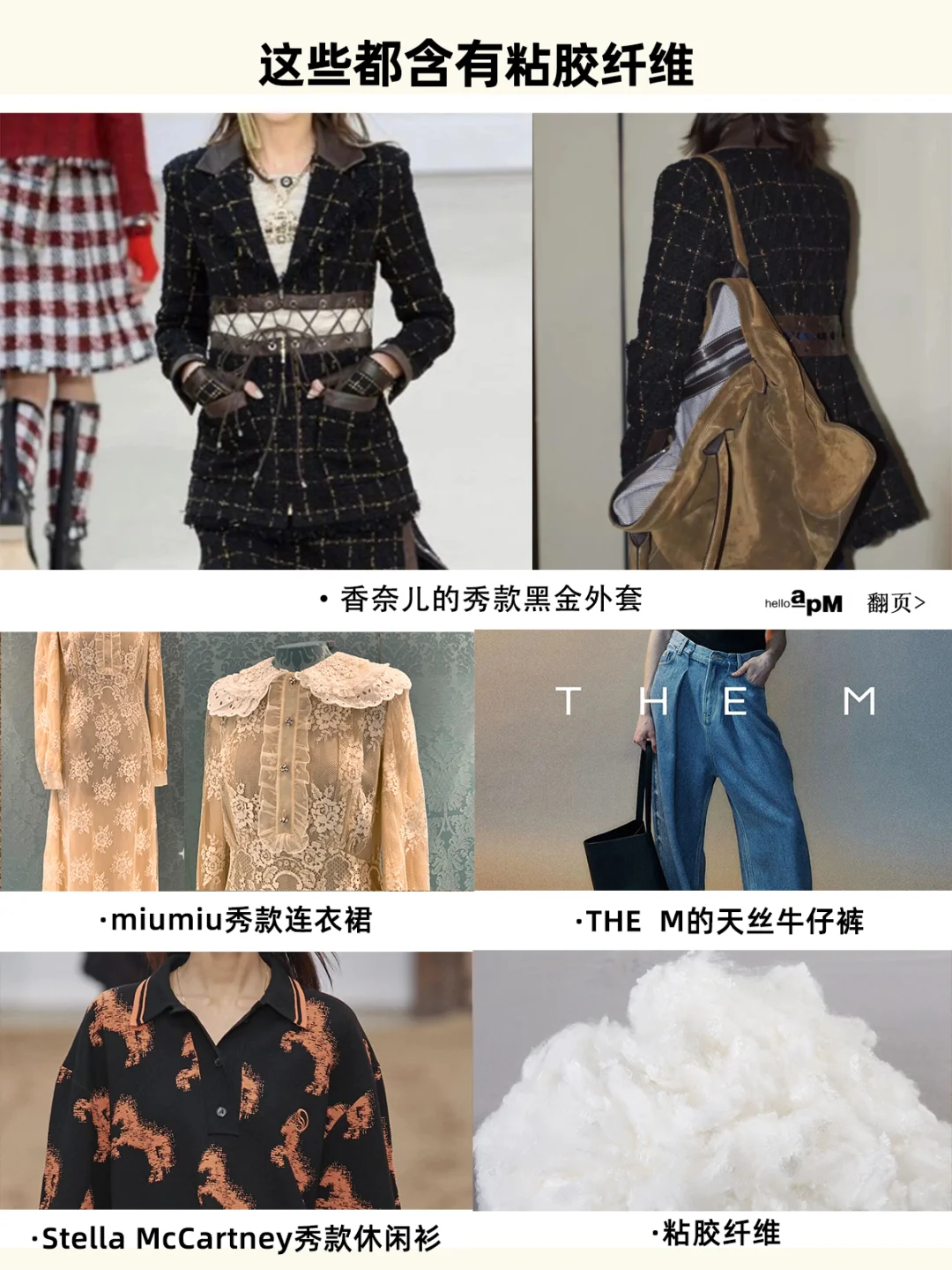 ·香奈儿秀款黑金外套·miumiu秀款连衣裙·THE M的天丝牛仔裤·Stella McCartney秀款休闲衫·粘胶纤维