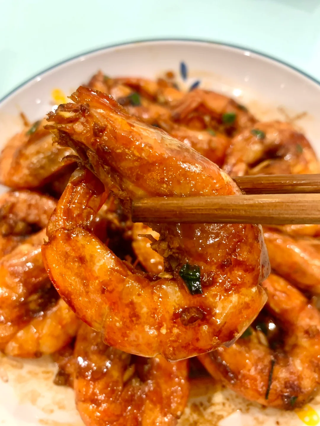 [彩虹R][彩虹R]谁会拒绝一盘油焖大虾呢!酥酥脆脆连壳都不想放过,做法非非非常简单![派对R] 食材:大虾500g,姜蒜末少许 调个料汁:2勺生抽,半勺老抽,半勺白糖,一勺料酒,一勺蚝油,半碗清水搅匀备用 1⃣️油热倒入大虾,煎至外壳酥脆,按压虾头出虾油 2⃣️倒入姜蒜末炒香,倒入调好的料汁,焖煮2分钟后大火收汁,撒上葱花即可~ 学会它!就是你的拿手菜!😋