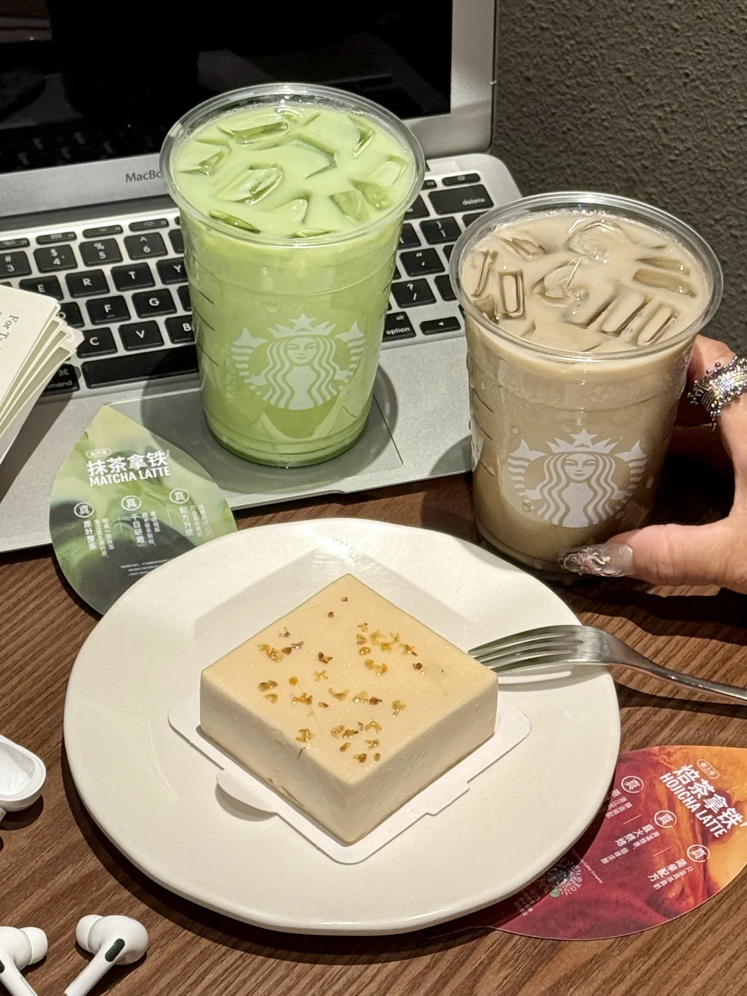 中杯无糖抹茶拿铁➕金桂白玉芝士蛋糕!!