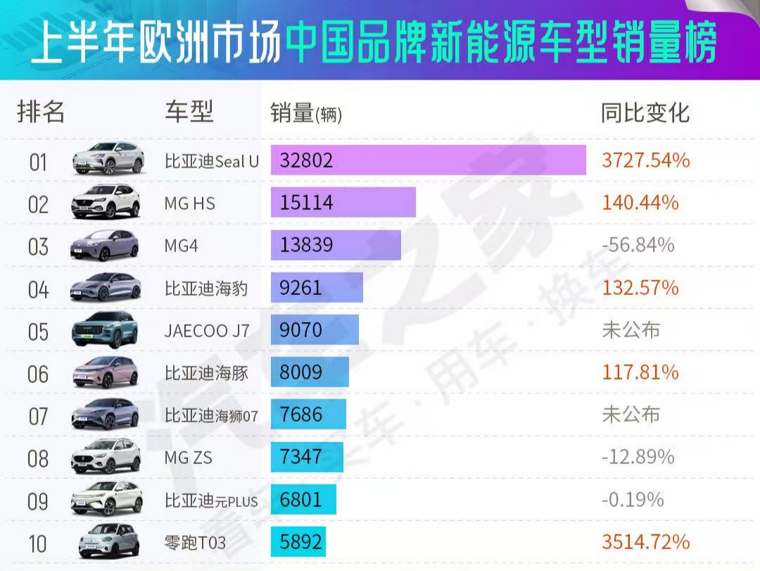 中国车在海外不再是小打小闹,而是真正“赚钱到手软”! 在近期,比亚迪的海外销量曝光,而且仅仅是欧洲成绩就极其亮眼。今年上半年比亚迪在欧洲新能源市场上演了一出“销量狂飙记”——71,345辆的销量,同比增长322.99%!这增幅,比坐火箭还快,直接登顶中国品牌榜首。形成鲜明对比的,在欧洲拥有超级工厂的特斯拉,同期销量约为10.5万辆,而比亚迪新车是出口过去的,考虑到时效性与成本,比亚迪的数字很亮眼,一旦欧洲工厂投产,销量肯定还要明显增长。 更绝的是,比亚迪不只欧洲一枝独秀,它还在全球112个国家和地区“遍地开花”,从北欧的雪地到东南亚的沙滩,比亚迪的车子到处都是。从数据方面来看,今年1-8月全球销量286.39万辆,同比增长23%,其中海外贡献63.07万辆——这数字已经超过去年全年总和! 总之,比亚迪的全球崛起,证明了中国制造不再是“廉价标签”,而是“科技范儿”的代名词,也是中国品牌出海的新标杆!而这一切对于比亚迪,以及年轻的中国车企而言,才刚刚开始!