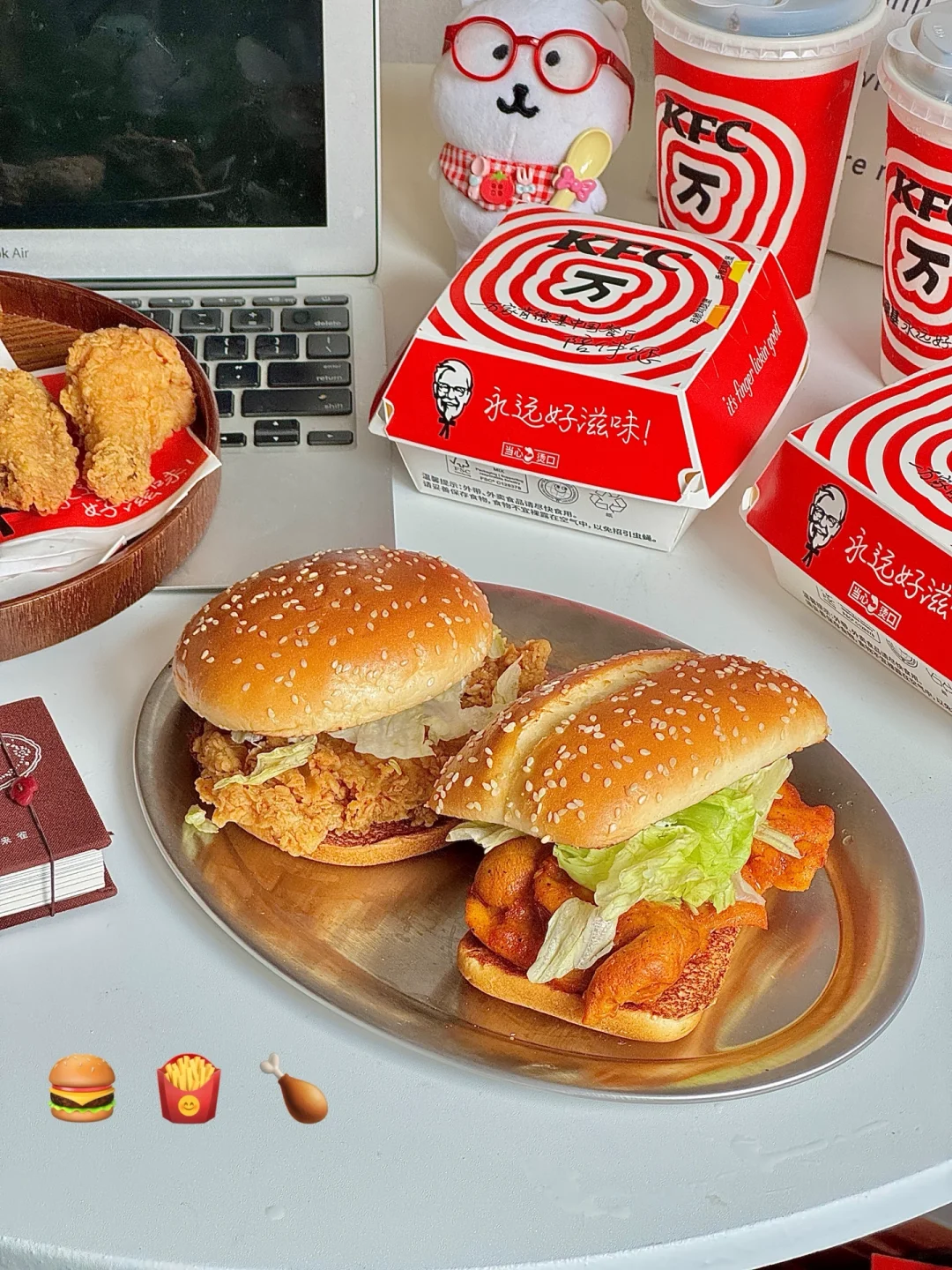 主食我选了香辣鸡腿堡+新奥尔良烤鸡腿堡