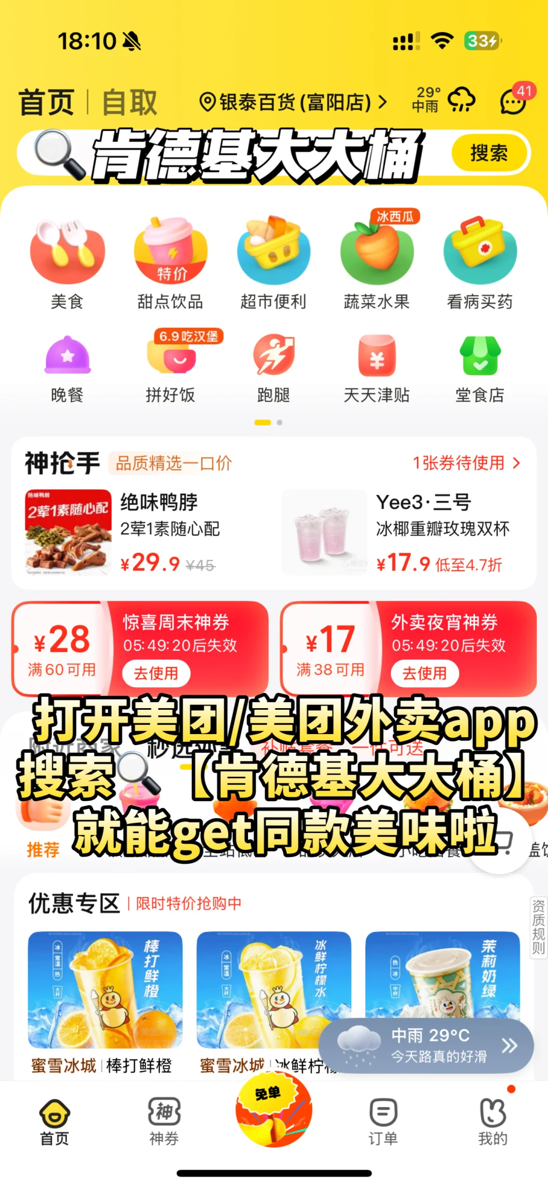 划重点!8.1-8.7日上美团/美团外卖app🔍【肯德基大大桶】就能get同款美味!