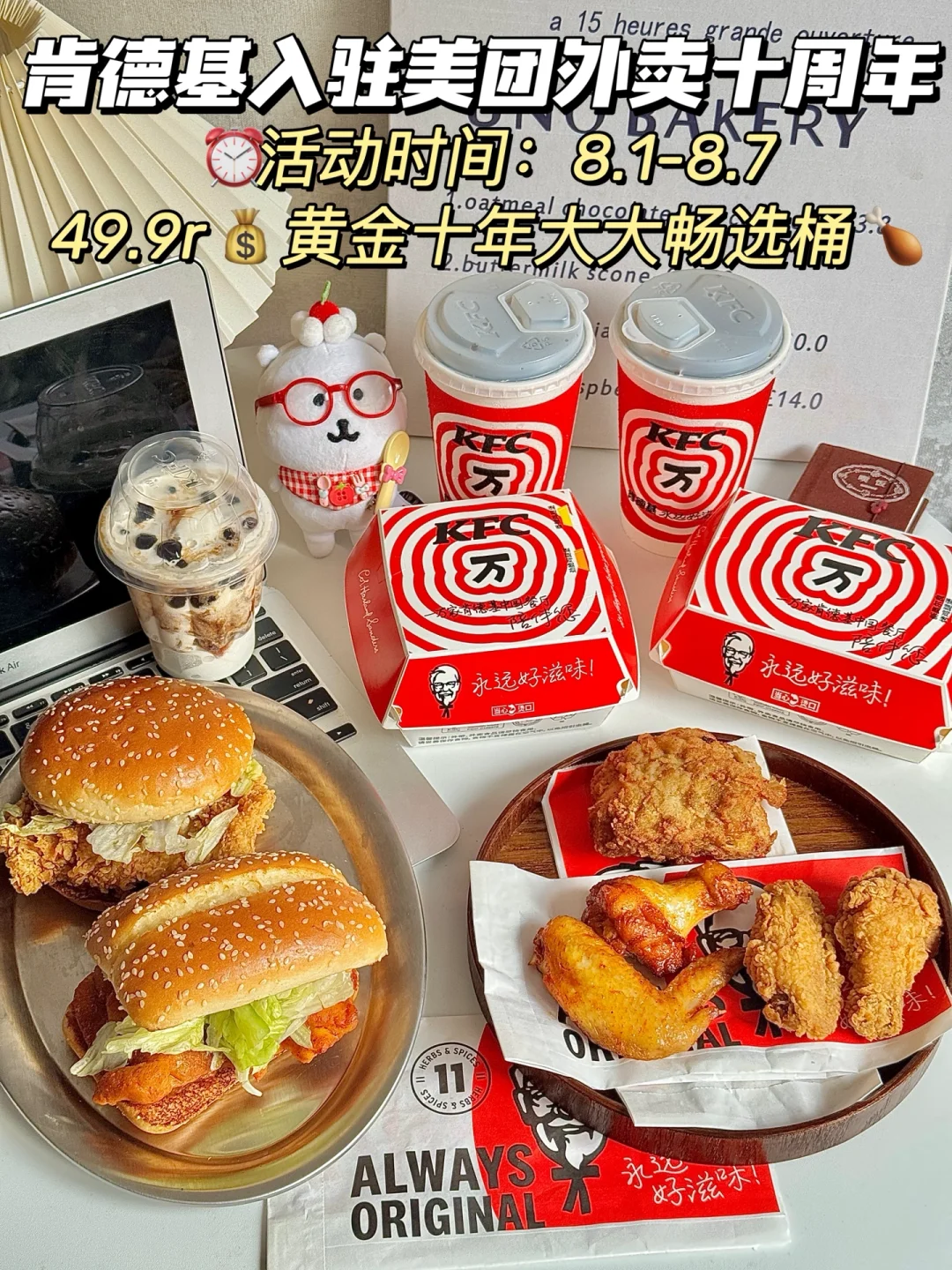 这么优惠原来是为了庆祝🍾肯德基入驻美团外卖10周年!