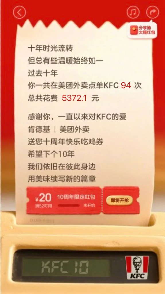 美团还贴心的给我们准备了肯德基10周年账单🧾