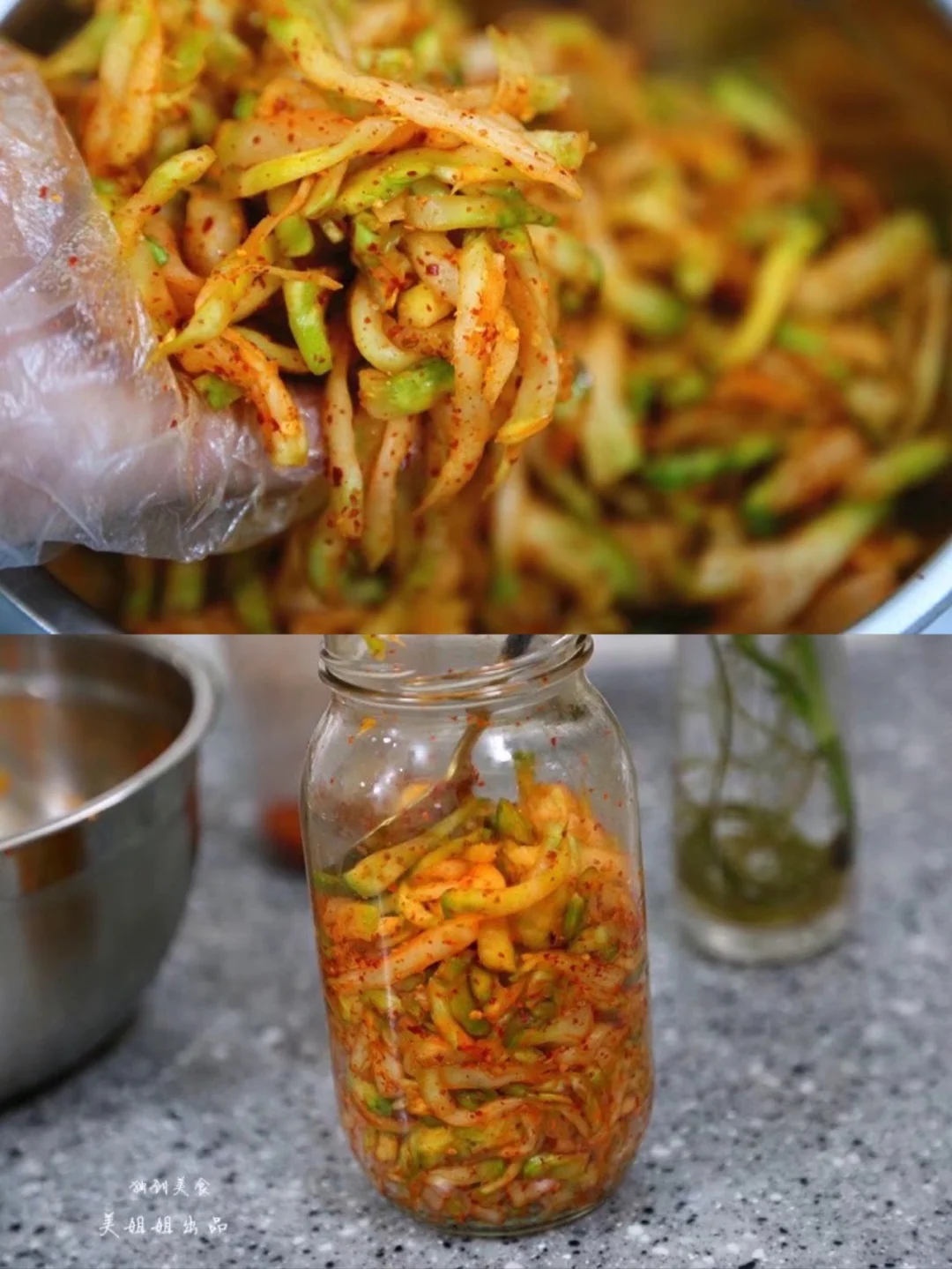7.给你们腌出了很多水,榨菜丝儿也变得很软