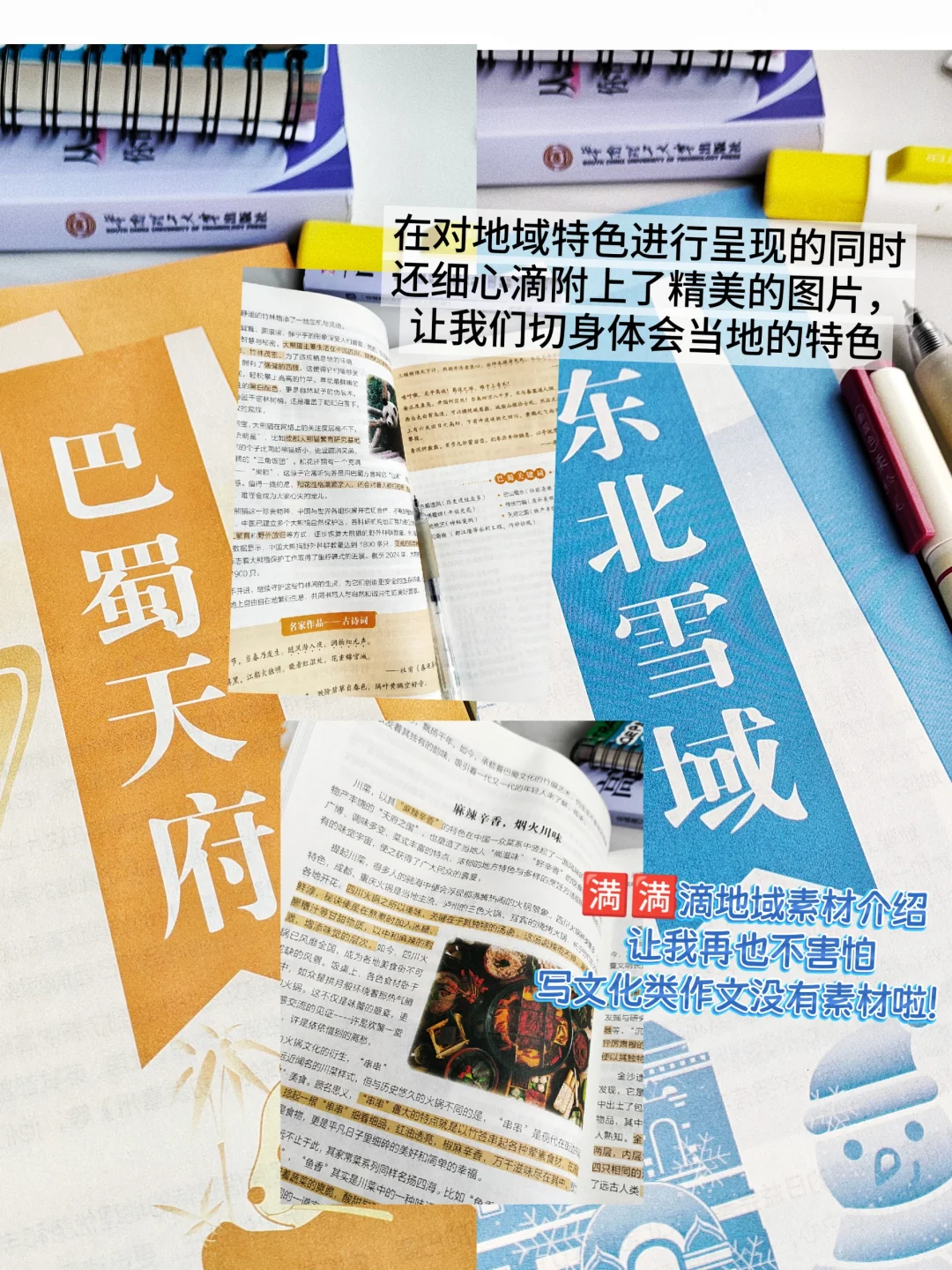📕它里面介绍了很多的地域素材(有自然风光🏞、美食🍧、非遗文化🏮…敲级多滴内容,可以很大程度地帮助我们拓宽知识面,敲敲告诉你们里面还附有许多精美滴图片,让我们深切的体会了一场不出门也能实现的远游!真的泰裤辣!