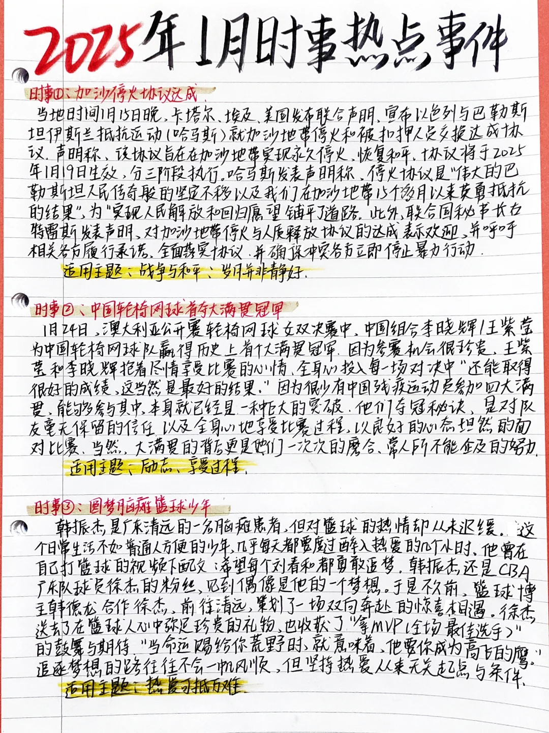 📩叮~ 2025年1时事热点素材第二版来啦! 快来拿出你们的寒假作业过来摘抄吧