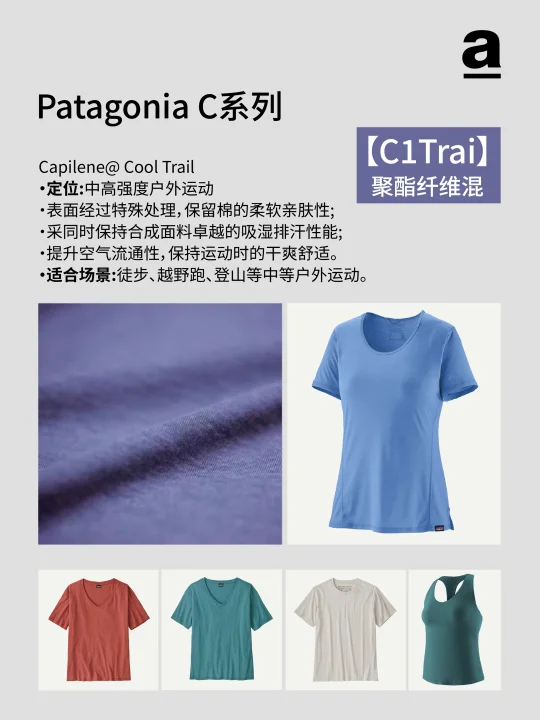 2️⃣Capilene Cool Trail(C1Trail):同样常规版型由70%聚酯纤维和30%NaiaRenew材质组成,具有独特的棉质柔软感,适合不喜欢纯聚酯纤维的朋友。