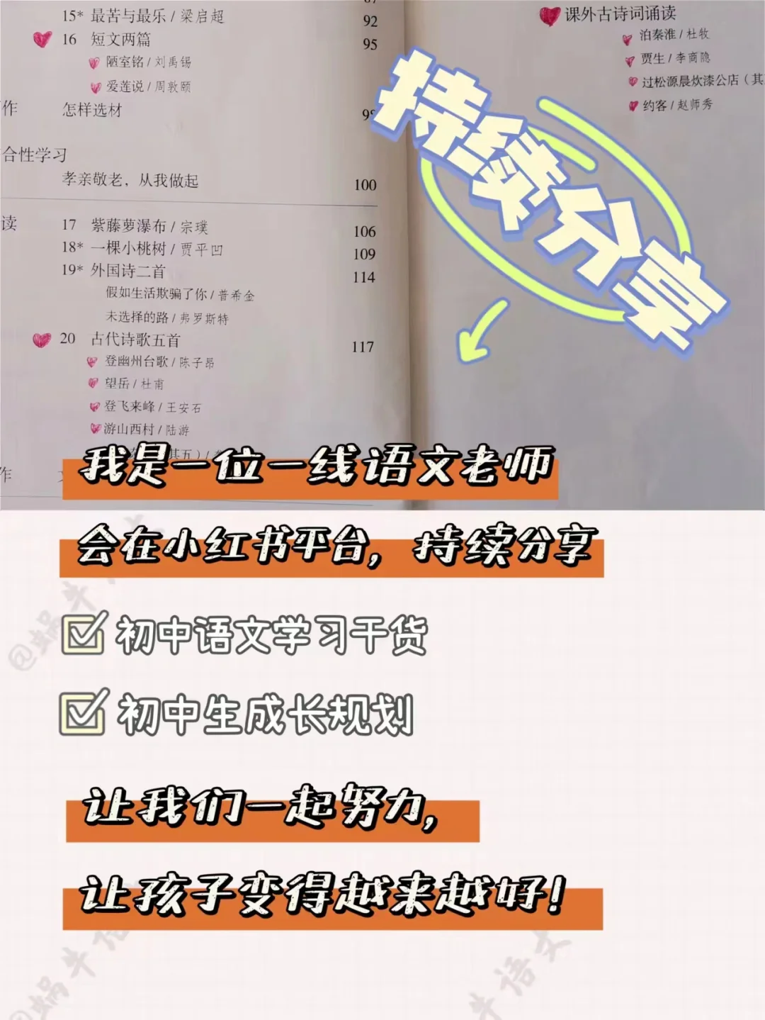 🌸我是一位一线初中语文老师,长期致力于提升孩子语文成绩,会在小红薯平台持续分享初中语文学习干货和初中生成长规划。