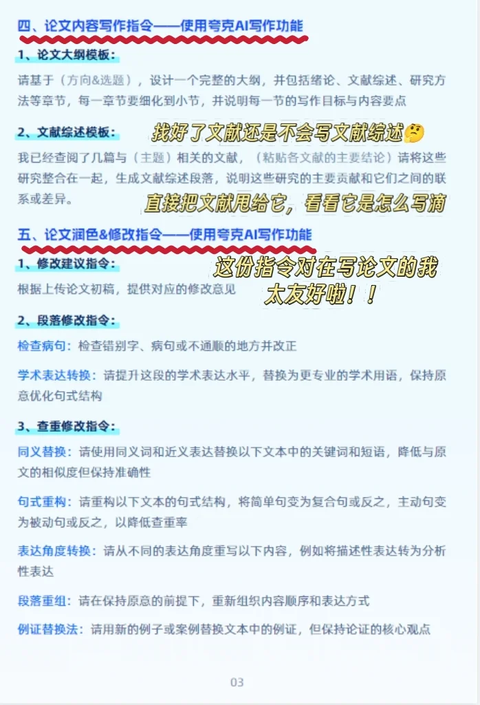 🔎信息差五:其实从写论文到答辩遇到的所有难题,都可以翻开秘籍找解决方法!学会高效使用AI辅助论文写作,毕业季再也不用熬夜头疼!想知道写论文过程中如何使用AI解决难题的指令,我都帮大家从手册里提炼好啦,赶紧左滑收藏!(感谢学姐,拯救了我们一整个宿舍!!!)