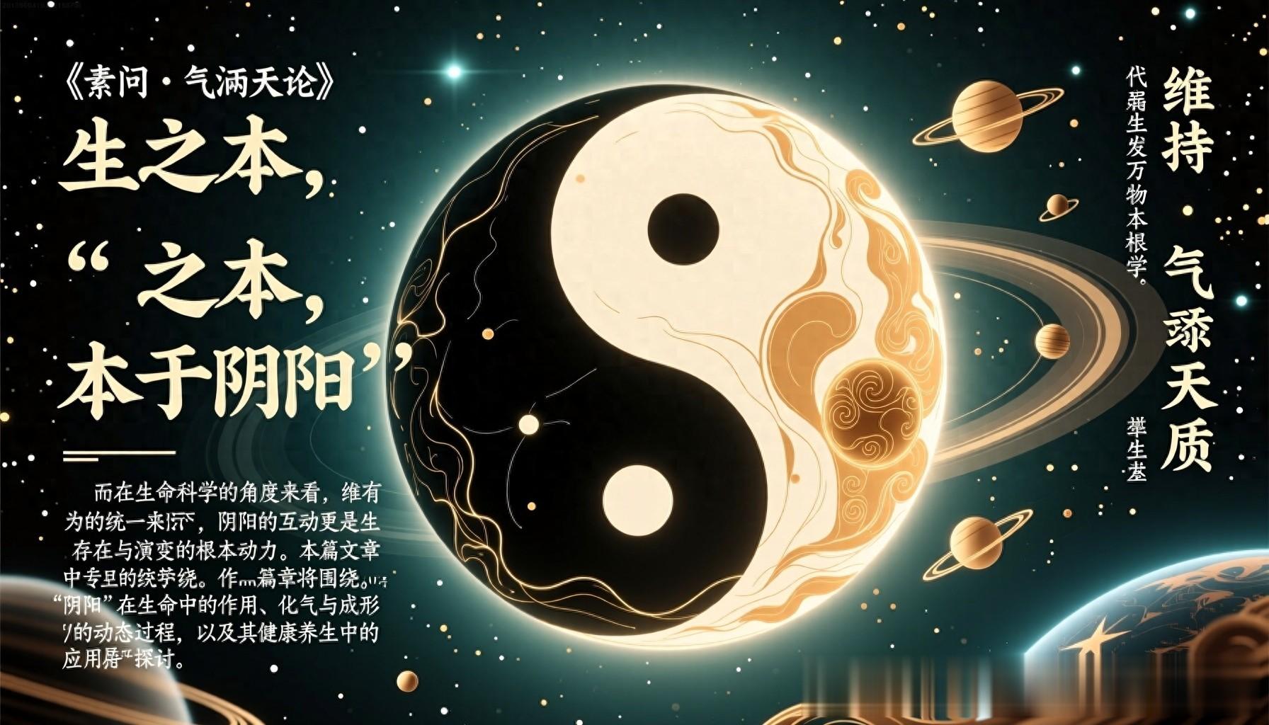 《素问·生气通天论》中的“生之本,本于阴阳”深刻揭示了生命的根本本质,强调阴阳在生命生成、维持与发展的核心作用。阴阳作为中国传统哲学的基本范畴,代表着宇宙万物的对立统一关系,而在生命科学的角度来看,阴阳的互动更是生命存在与演变的根本动力。本篇文章将围绕“阴阳”在生命中的作用、化气与成形的动态过程,以及其在健康养生中的应用展开深入探讨。