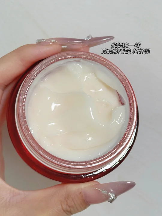 没错就是! OLAY新品!第五代OLAY超红瓶面霜 首先被它的肤感和味道俘获了 奶冻质地 一抹就化水了 完全不会黏腻的那种 混油皮油皮不用担心会闷痘不适 淡淡花香味道闻起来就很安心很舒适 主要的还是在功效上 新版本也显著提升了哦 对于线条清晰有帮助 沟沟壑壑也是略显平整了呢 提升了脸蛋的紧致感 整个脸看起来精神状态饱满不少哦~