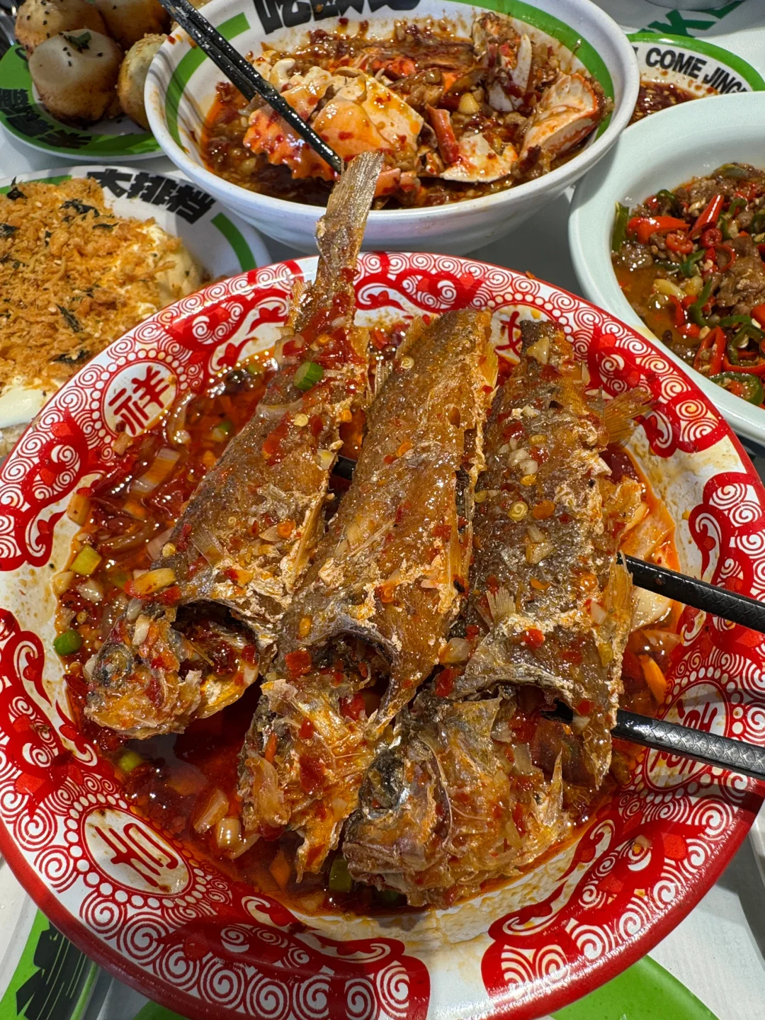 工作日排队100多桌 我真的酸Q了 之前在景德镇吃过一次就念念不忘 菜品的口味和我在景德镇吃到的一模一样!! 推荐点王牌鸡爪、招牌蟹脚、浇汁小黄鱼、皮蛋肉饼汤、白糖糕、流沙蛋黄吐司、江西牛肉炒粉都吼吼吃…