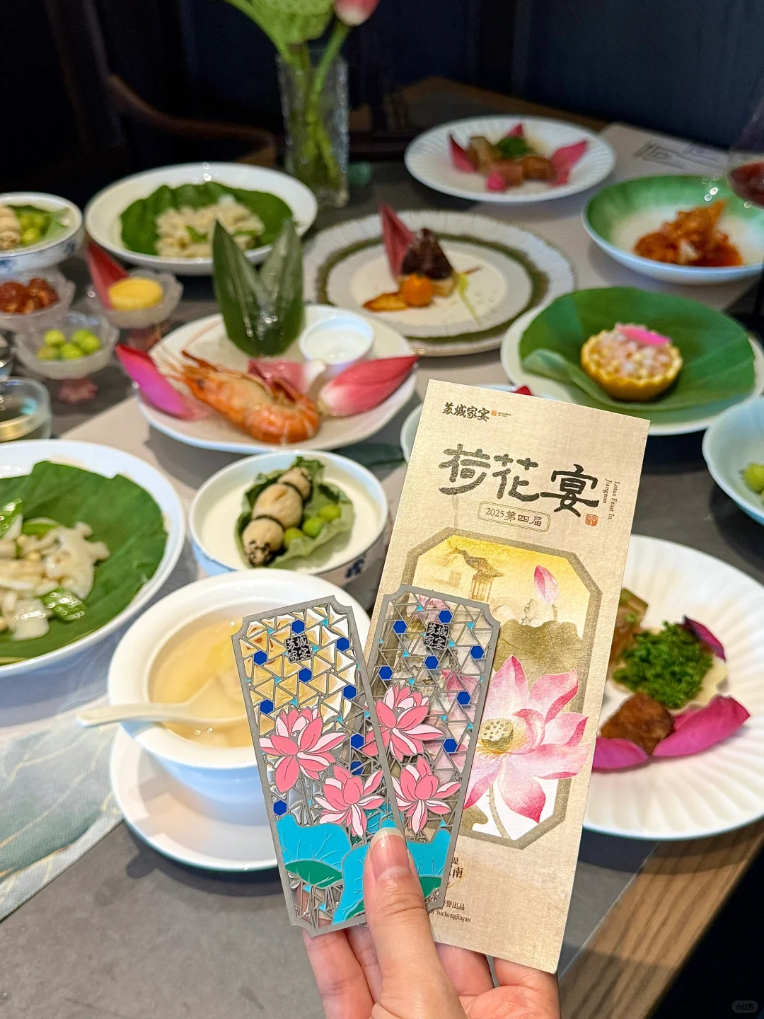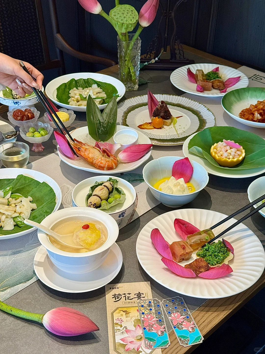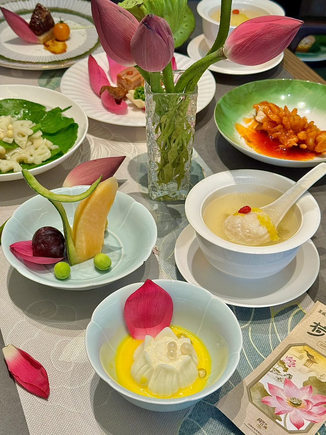 荷花宴都是位上的 一人一道菜 仪式感满满~
