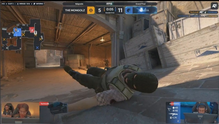 第17局蒙古强起冲B,mzinho双杀下包,KSCERATO也拿双杀被换,mzinho再杀Fallen拿到三杀,YEKINDAR进B门送mzinho四杀,molodoy大狙轰掉mzinho后拆包,蒙古5-12黑豹。