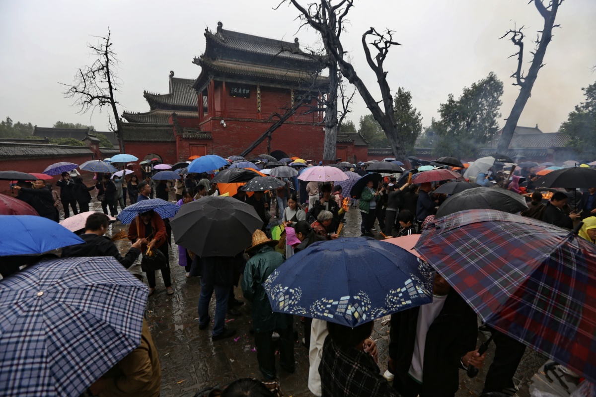 9月22日,游客冒雨参观太昊伏羲陵。记者李玉坤摄