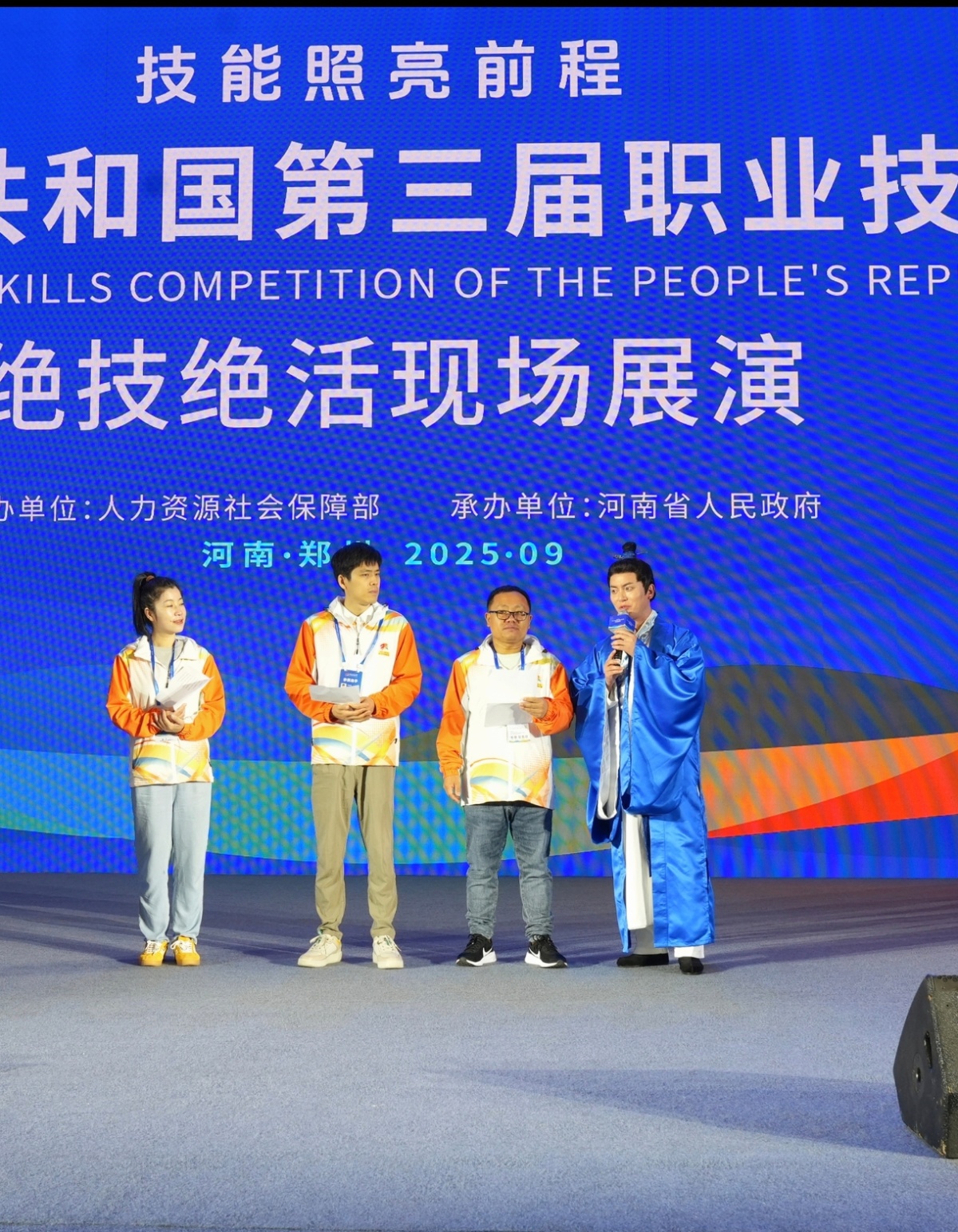 “世上无技能,干啥啥不成!”9月22日,第三届全国技能大赛现场,知名青年豫剧演员孟振华教浙江、河南、天津三地国赛选手唱响豫剧,全场燃爆了。