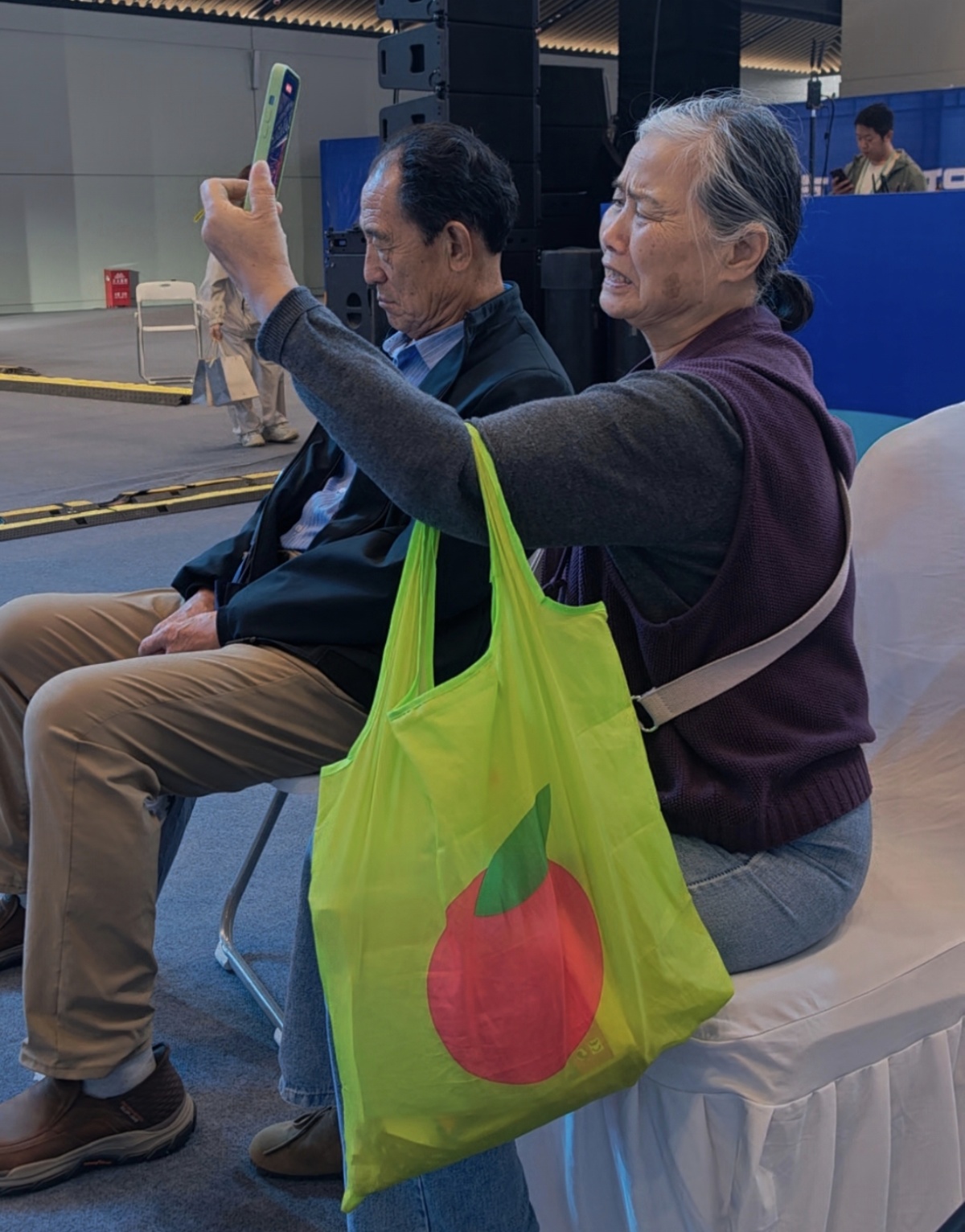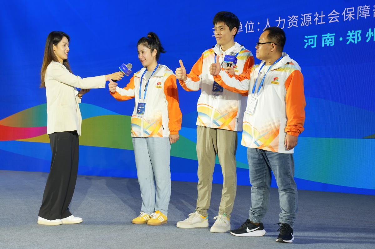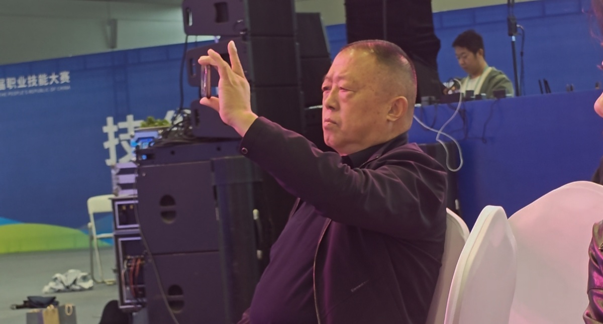 郑州市民侯阿姨今年77岁,听说全国技能大赛正在进行,今天冒雨前来,经过这个互动区域时“挪不动步子了”,“中!好听!得劲!”她连用3个词形容。听到台上选手学唱,她忍不住哼唱。