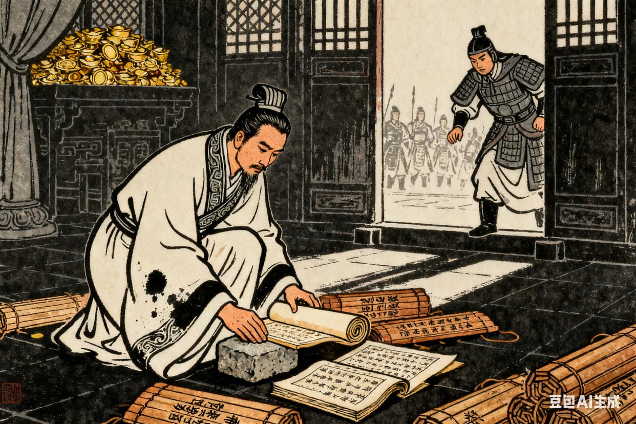 公元前206年,刘邦率领大军攻入咸阳。将士们一进咸阳城,就像饿狼扑食似的往秦宫的库房里冲,抢金银的、夺锦缎的,乱成一团。萧何却骑着马,直奔秦丞相府和御史府。他让士兵守在门口,谁也不准进,自己则蹲在地上,把散落的律令、图籍、户籍册一本本捡起来。竹简上的秦篆还带着墨香,有的册页被风吹得翻卷,他就用石头压住。有士兵来报:“萧大人,将军在秦宫设宴,让您过去呢!”他头也没抬:“你告诉将军,我在捡比金银还贵重的东西。”后来刘邦问他捡这些破烂干啥,他把整理好的图籍递过去:“将军您现在知道咸阳有多少户人家、关中能产多少粮吗?知道哪个关口易守、哪个郡县富庶吗?这些册子上都写着,有了它们,咱们才能治理天下。”刘邦这才明白,萧何捡的不是破烂,是汉家天下的根基。