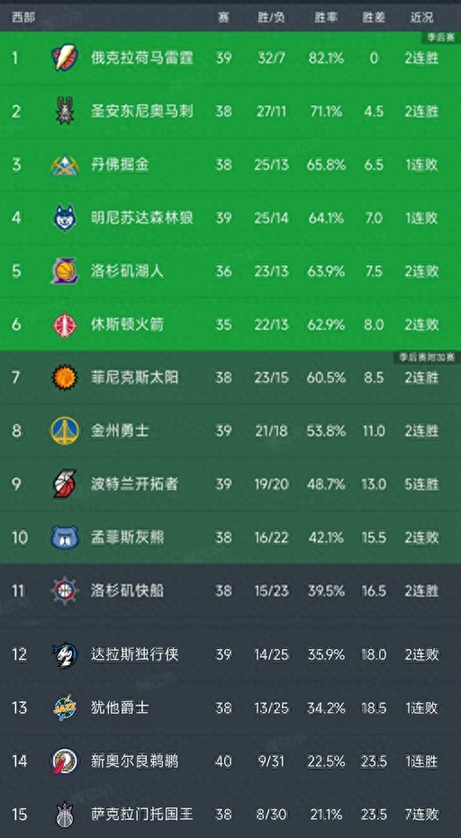 随着马刺2连胜,爵士惨败65分,NBA西部最新积分榜出炉!快船第11