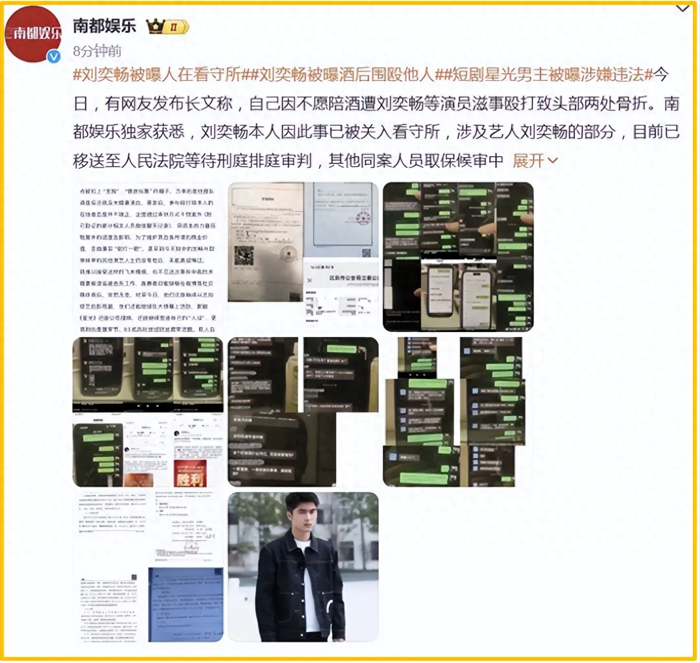 因拒绝陪酒,被演员刘奕畅围殴至骨折,人已抓,等开庭